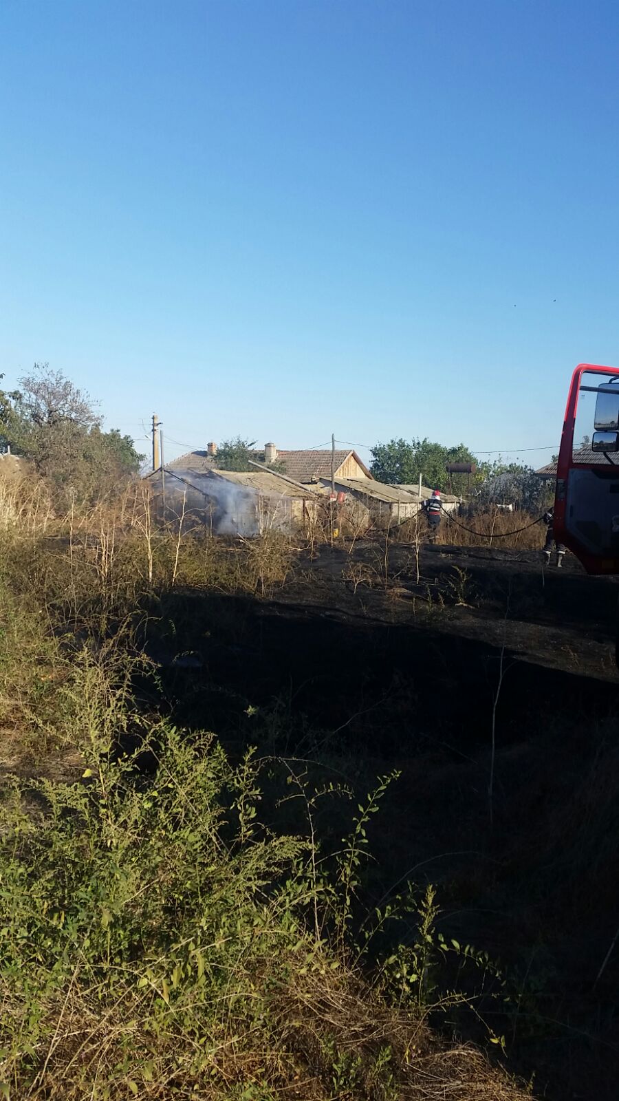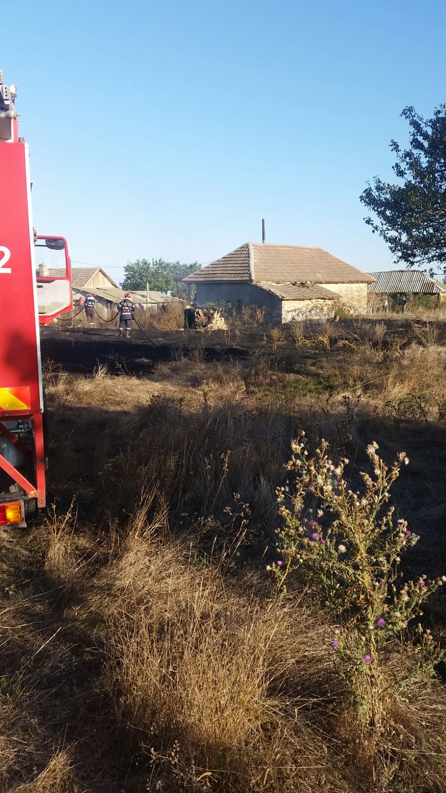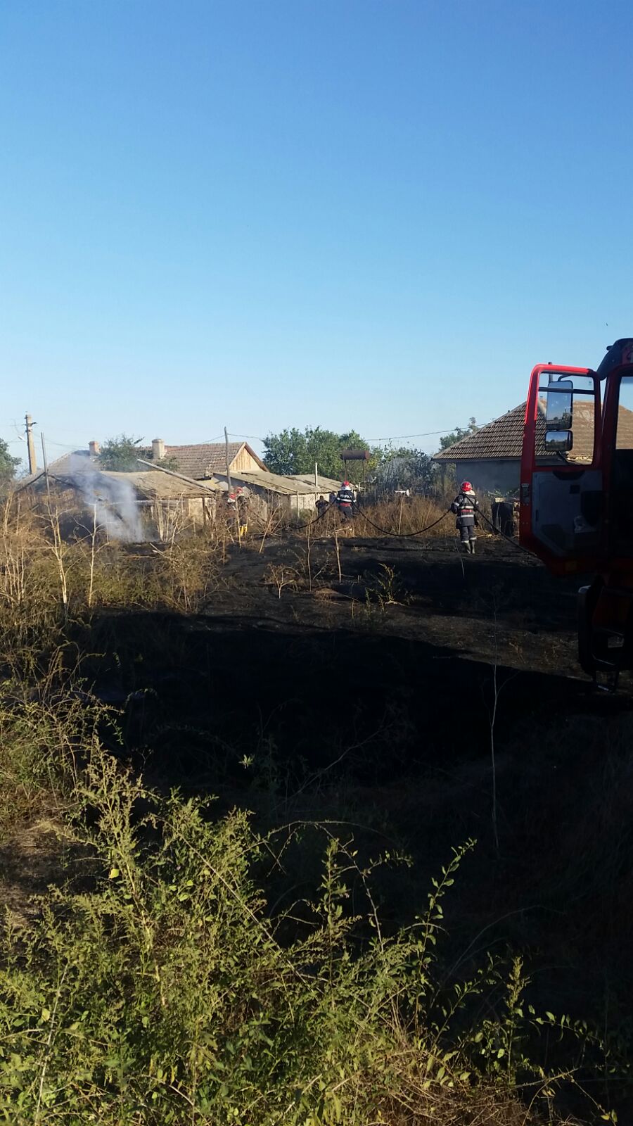 Potrivit primelor informații a ars o suprafață de aproximativ 150 de metri pătrați de vegetație uscată. Incendiul s-a extins și la o anexă gospodărească.