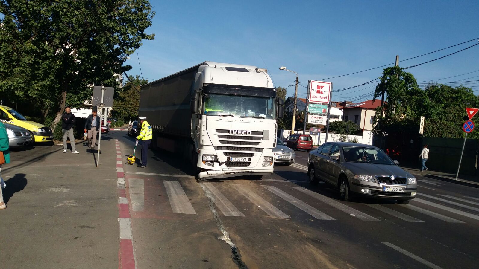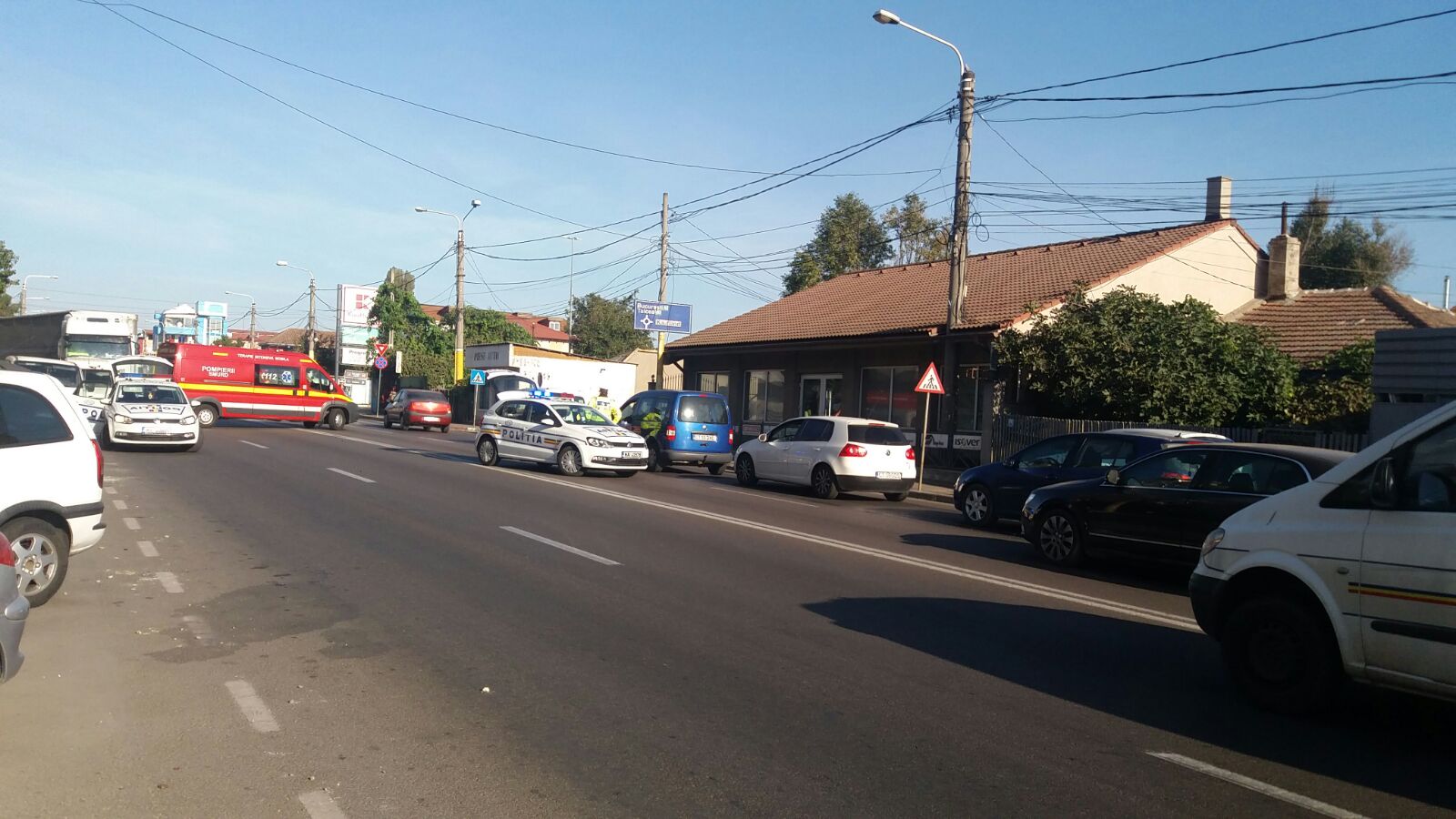 Potrivit martorilor oculari, un tir a lovit o autoutilitară, care la rândul ei, a acroșat un pieton.