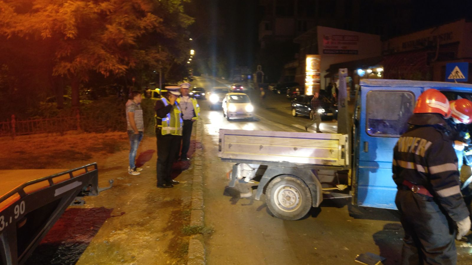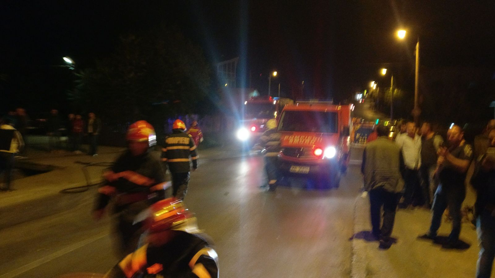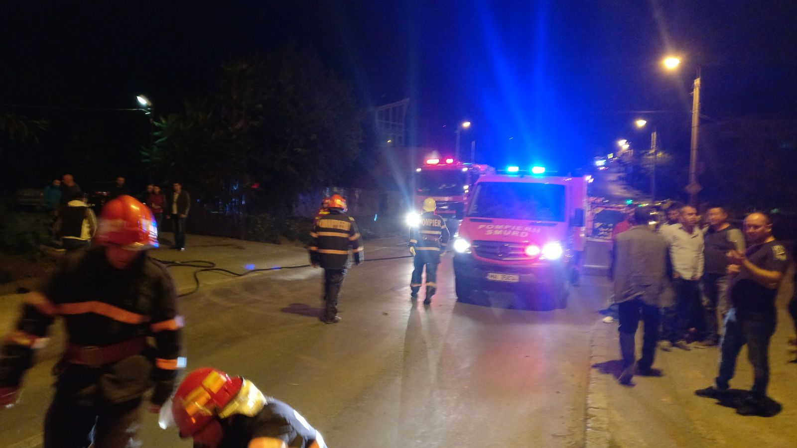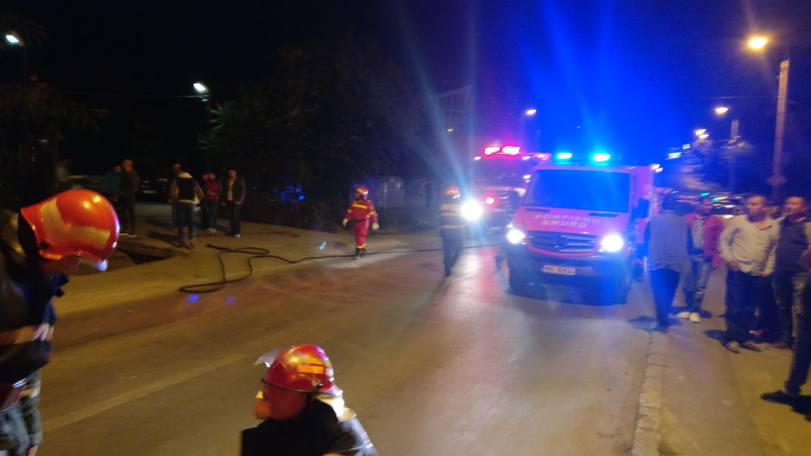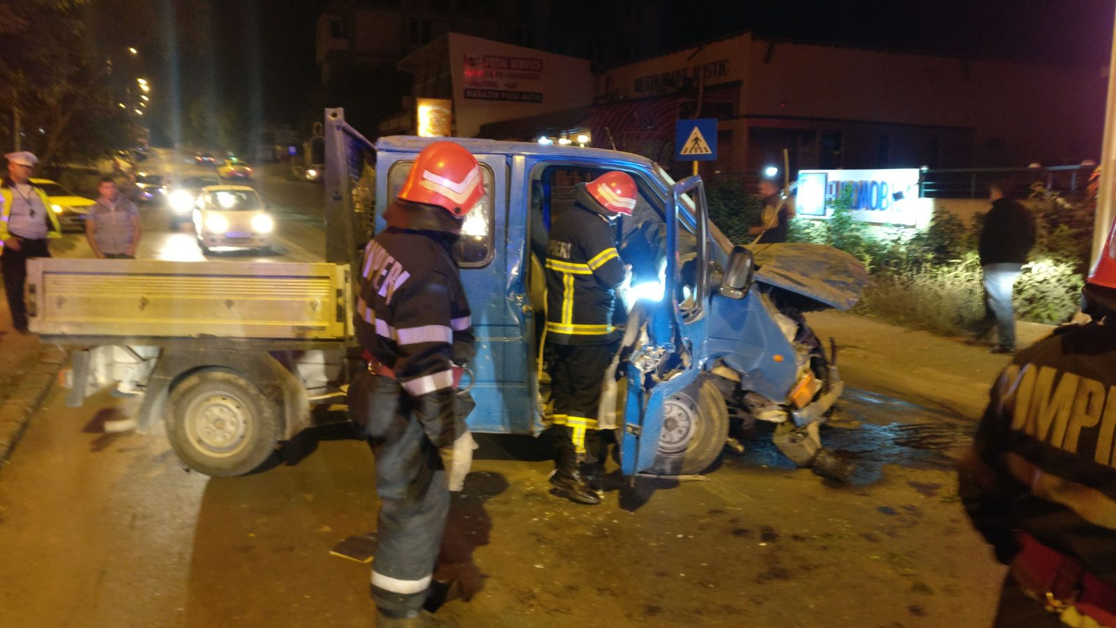 Se intervine cu o autospecială de stingere cu apă și spumă, o autospecială de descarcerare grea, un echipaj SMURD și 10 subofițeri.