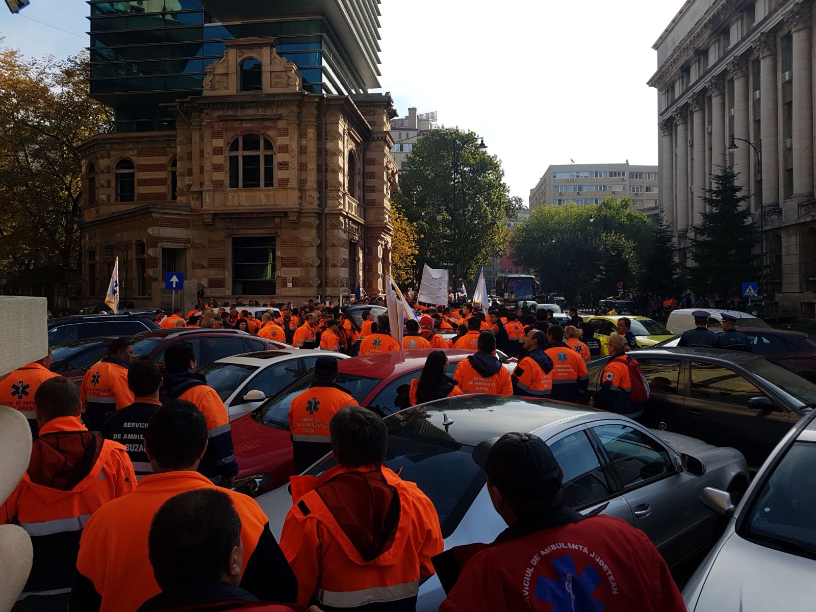 Sindicaliştii de la Ambulanţă pichetează la această oră, 10.30, sediile ministerelor Muncii şi Sănătăţii, până la ora 12.30, după care vor porni în marş până în Piaţa Constituţiei.
