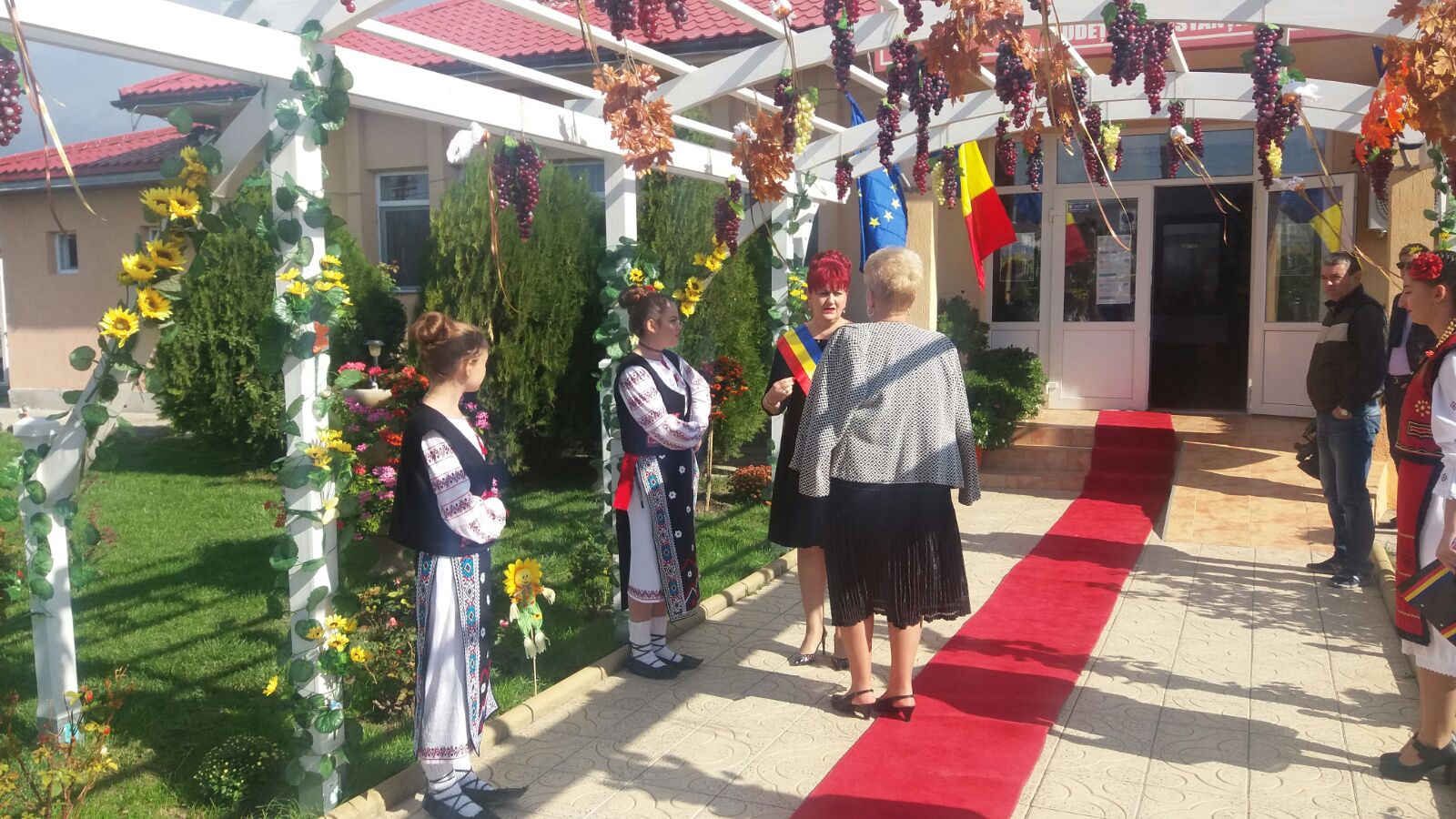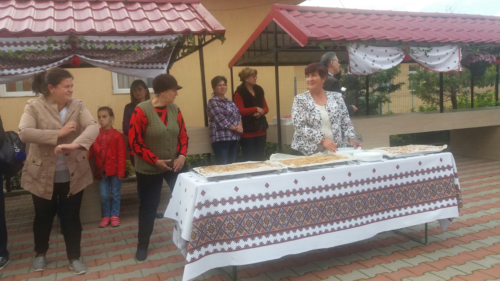 Oaspeții au fost întâmpinați cu pâine și cu sare iar mesele au fost încărcate de bucate alese, tradiționale: