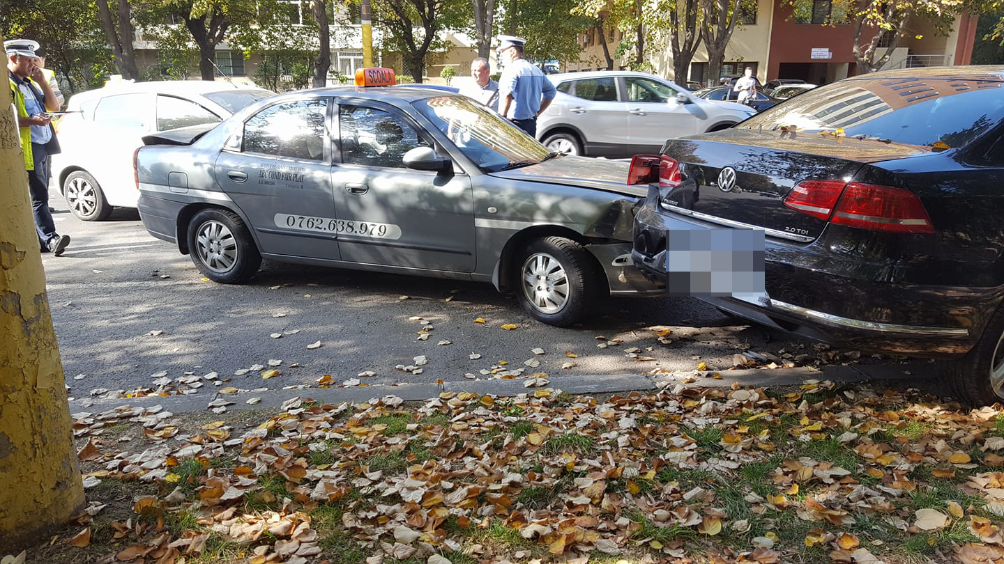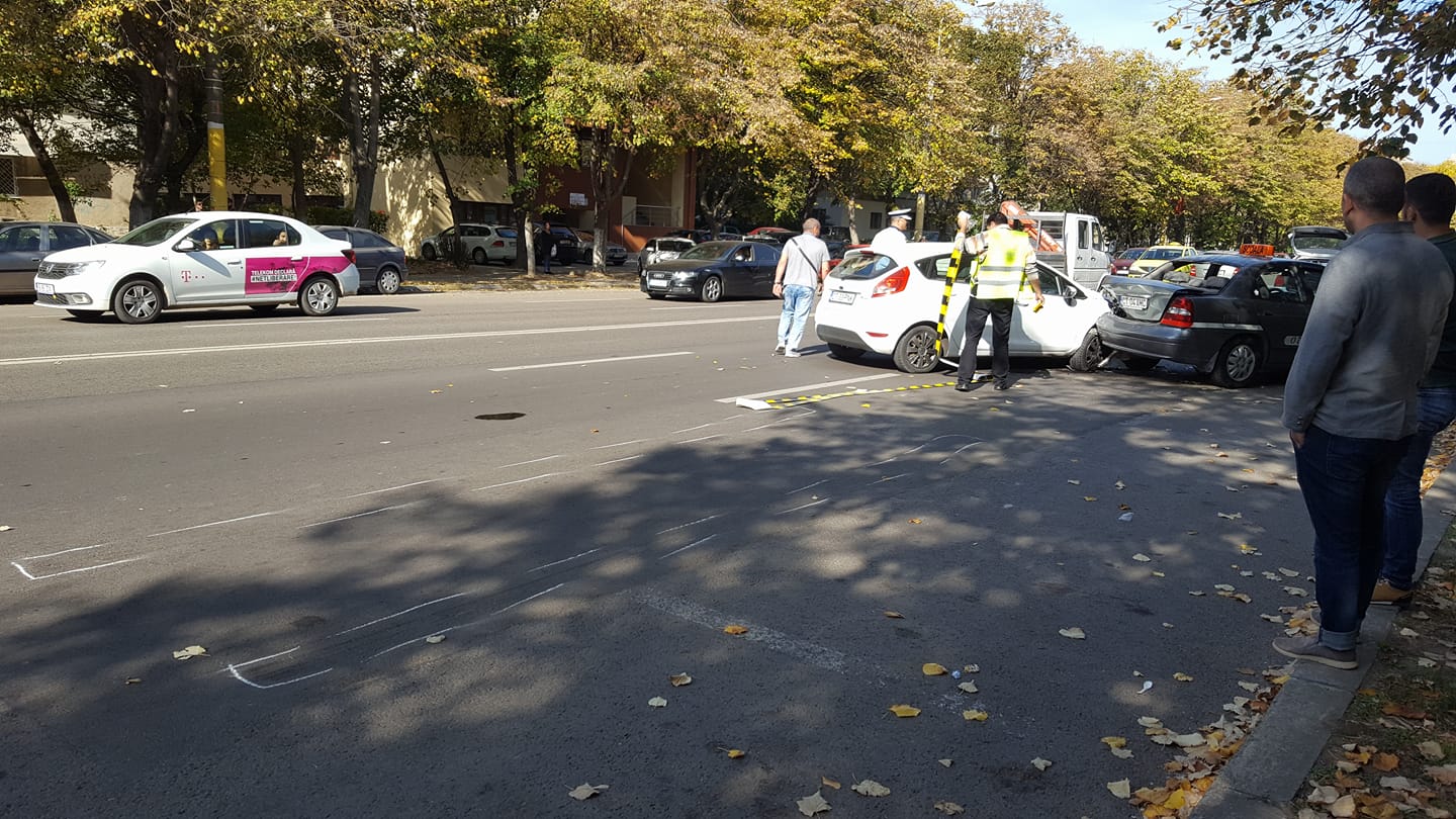 Martorii spun că o mașină cu inscripția „Școala“ încerca să efectueze o parcare laterală, însă n-ar fi avut în funcțiune semnalul dreapta și a fost acroșată de un Ford care circula în același sens de mers. În urma impactului, mașina școală a fost proiectată într-un Volkswagen parcat pe prima bandă de circulație.