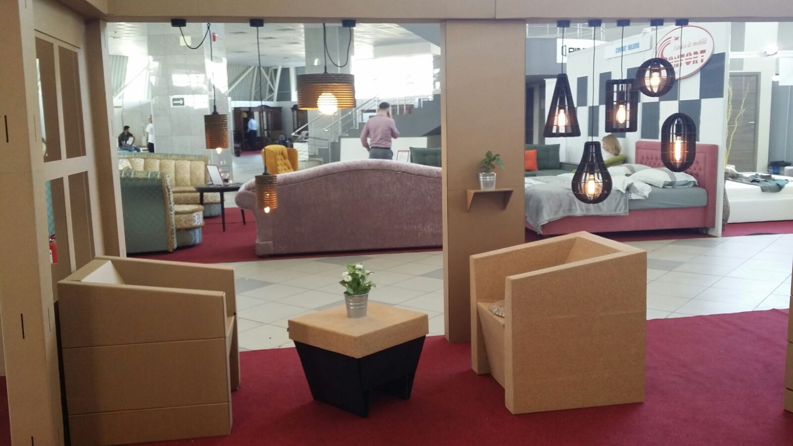 „Anul acesta am introdus materiale noi în conceptul nostru: plută și textil. Prezentăm un pat sută la sută din carton, care rezistă și dacă sare copilul în el și chiar mai bine decât unul tradițional. Nu există limită de greutate. Noi zicem că nu există persoană care să poată rupe un astfel de fotoliu sau pat.“