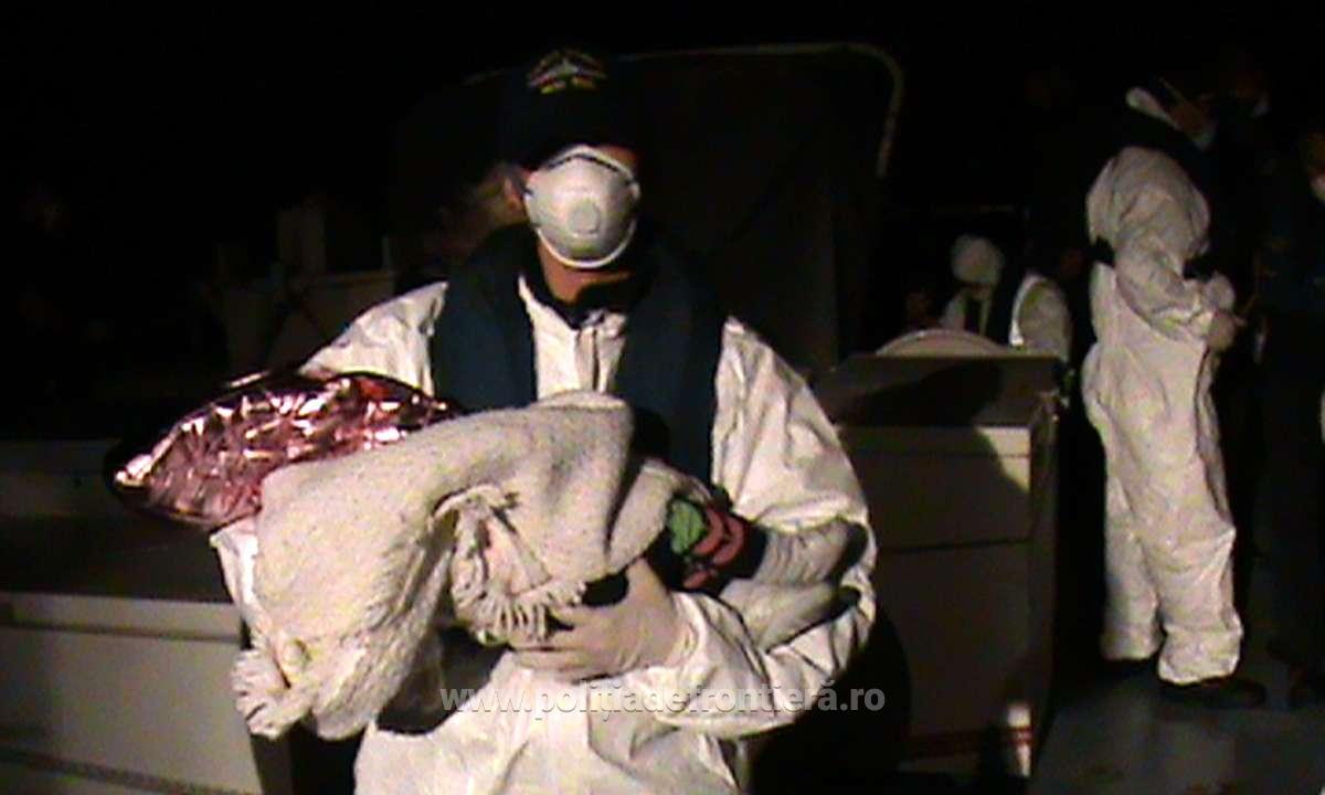 Poliţiştii de frontieră români au salvat 60 de migranţi, aflaţi pe o barcă gonflabilă, care risca să se scufunde în apele Mării Egee.