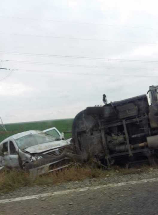 Accident grav la Cogealac! Două mașini s-au răsturnat pe câmp (foto)
