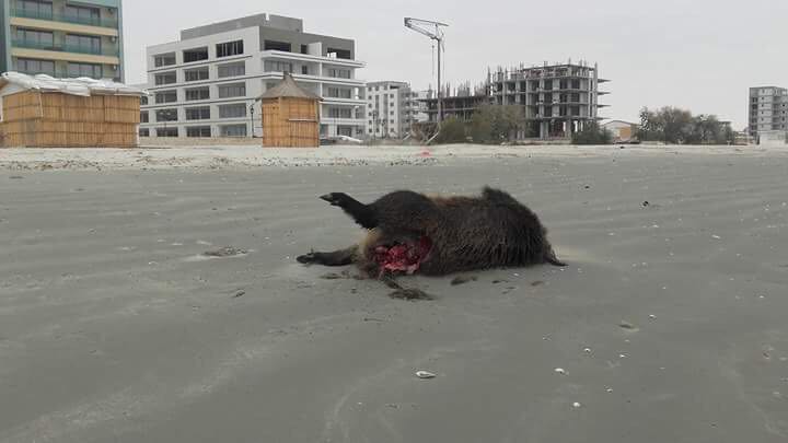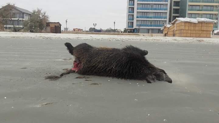 Descoperire mai puțin obișnuită, miercuri, pe plaja din Mamaia Sat. Angajații unei firme care se ocupă cu montarea țevilor de gaze naturale au observat că pe malul mării cadavrele sfârtecate a doi porci mistreți.