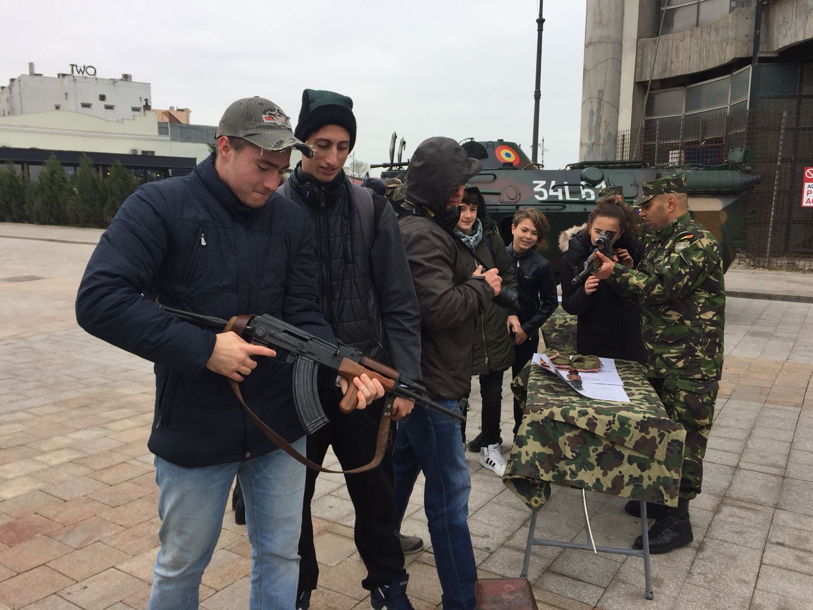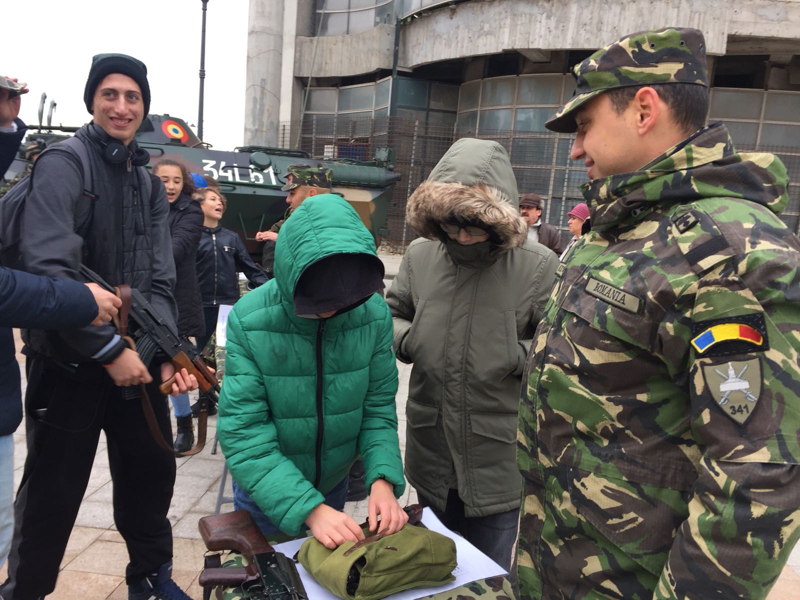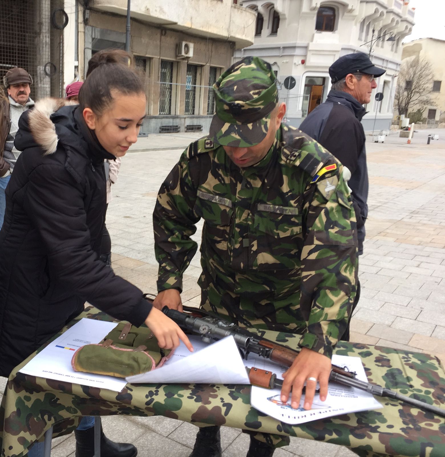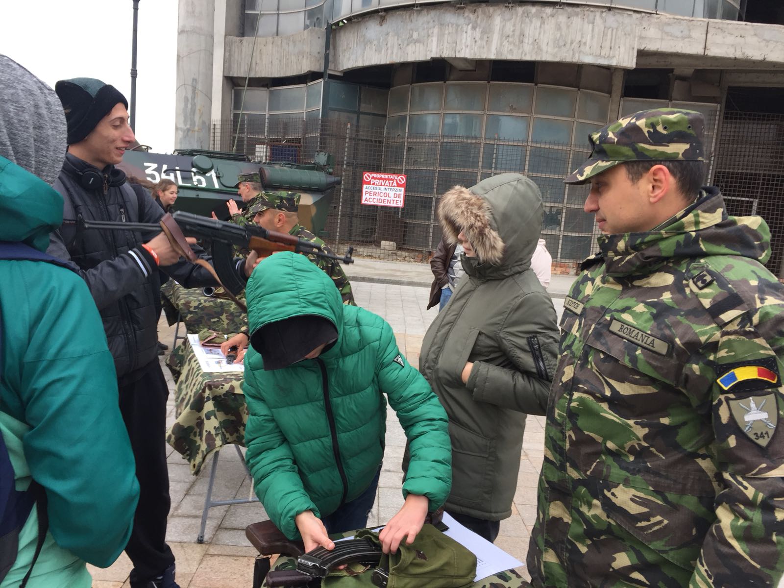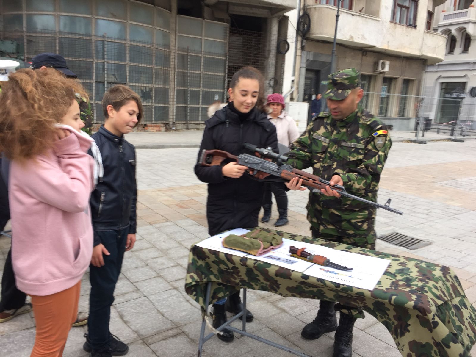 Publicul a putut să urce în TAB-urile aduse în fața Muzeului de Istorie din Piața Ovidiu, să încerce veste antiglonț care îi apără pe militarii noștri pe câmpul de luptă și să țină în mână armele cu care aceștia apără siguranța și libertatea unei întregi lumi, cot la cot cu ceilalți militari din statele NATO.