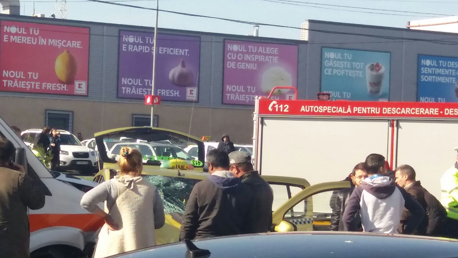 O ambulanță SAJ este implicată în accident. Martorii spun că e vină ar fi șoferul taxi-ului, care nu a acordat prioritate salvării și a încercat să întoarcă în intersecție, moment în care a fost izbit în plin de autospeciala SAJ aflată în misiune și care transporta un pacient către Urgența Spitalului Județean. Salvarea avea semnalele acustice și luminoase în funcțiune.