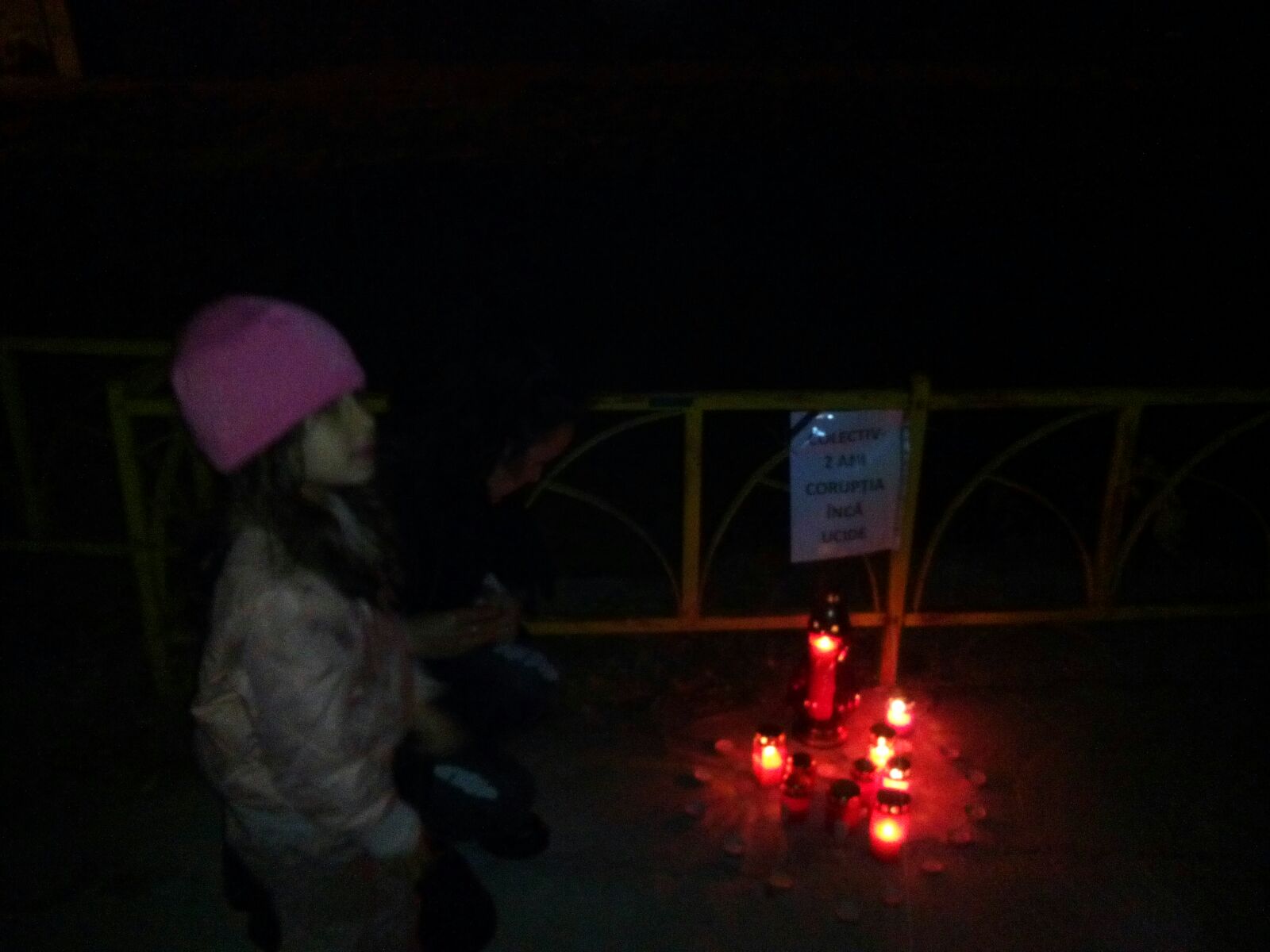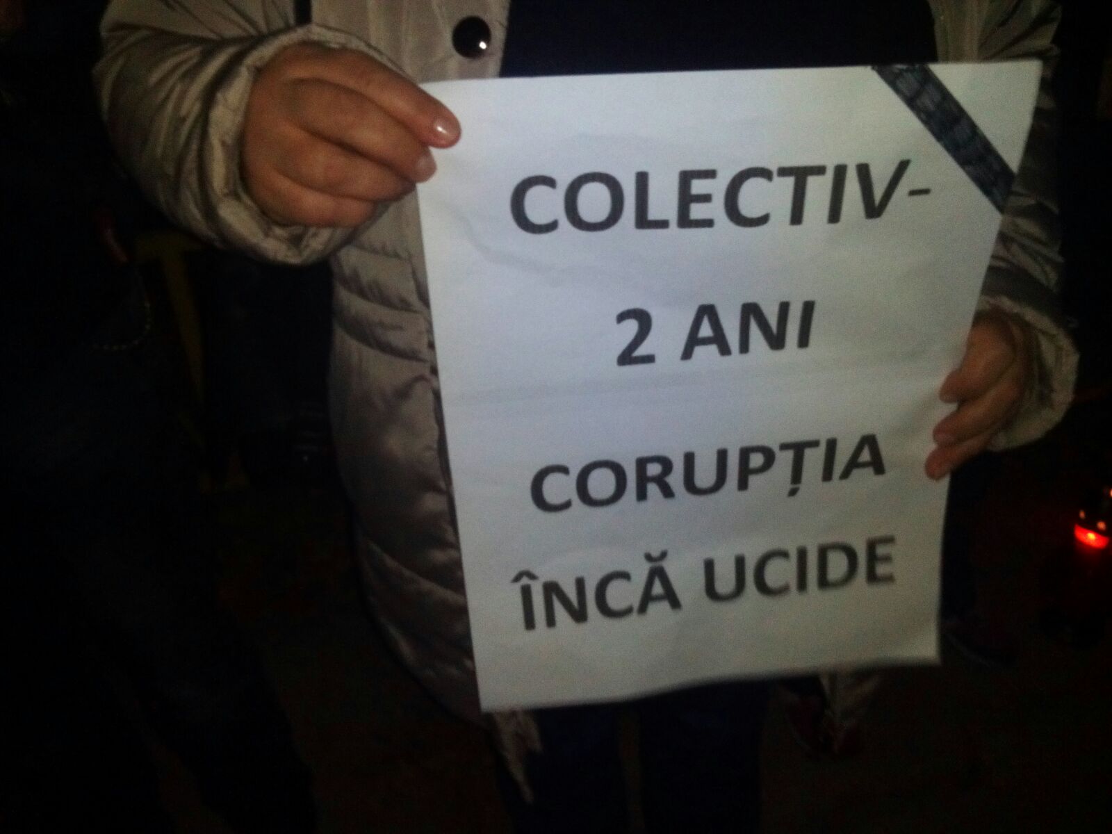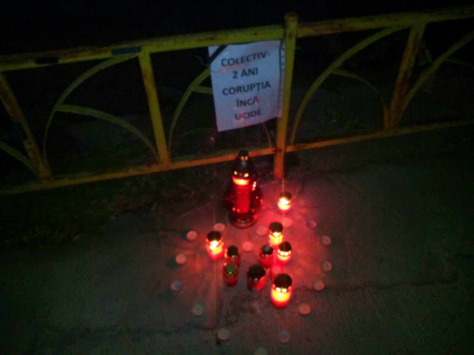 De aceea, mulţi dintre ei au ieşit în stradă duminică seara, la Constanţa, dar şi la Cernavodă, pentru a aprinde candele şi pentru a se ruga pentru sufletele celor dispăruţi. Alături de lumânările aprinse s-au afişat mesaje de tipul „Vinovaţii trebuie să plătească“, „Colectiv 2 ani – Corupţia încă ucide“ şi poate unul dintre cele mai dureroase şi care cuprinde în el deznădejnea celui care l-a scris:„Corupţia o să mai ucidă“.