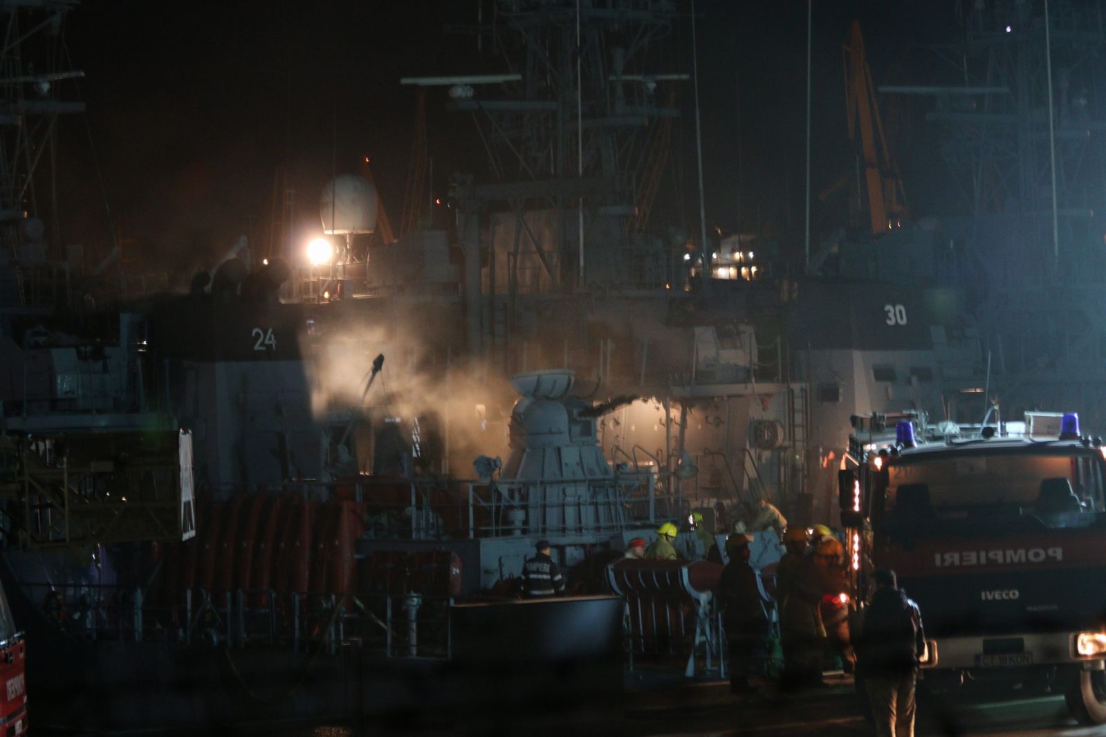 Un incendiu a izbucnit, luni seara, la o navă militară aflată în Portul Constanța, mai exact la Dana 0.