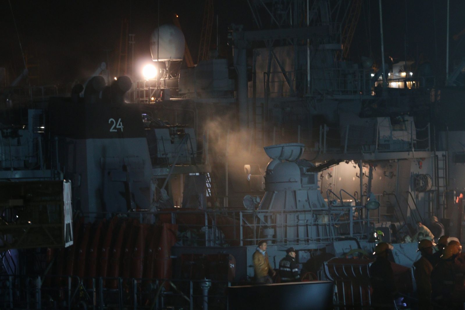 Potrivit reprezentanților ISU, există o degajare mare de fum, focul manifestându-se la sala mașinii (santină).