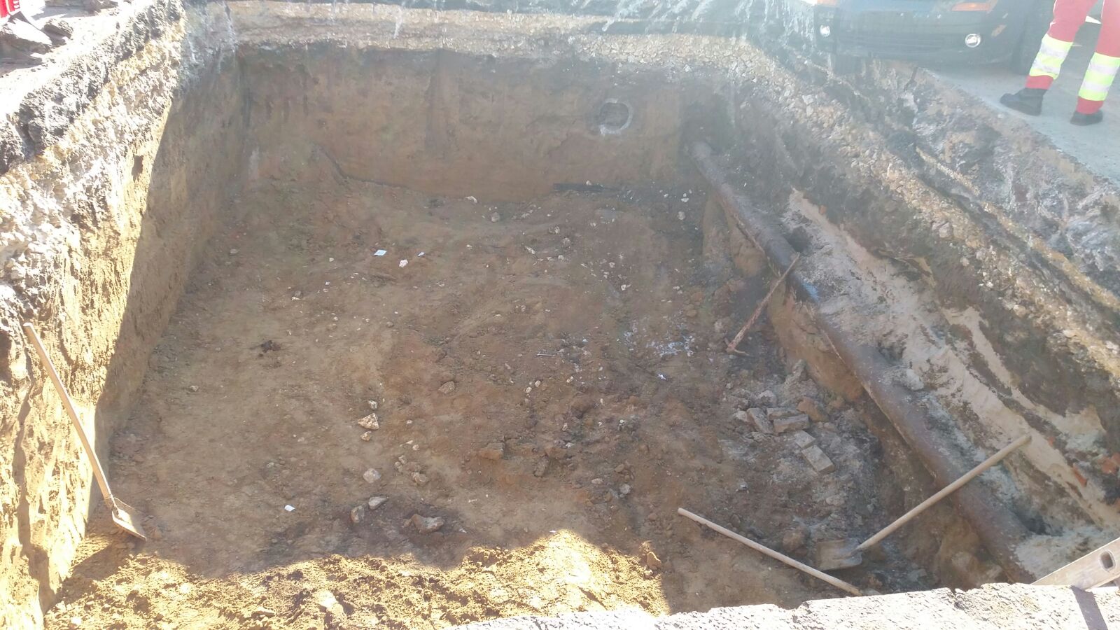Groapa de proporții considerabile a fost săpată pentru montarea unor conducte, iar lucrarea era semanlizată corespunzător, afirmă muncitorii.