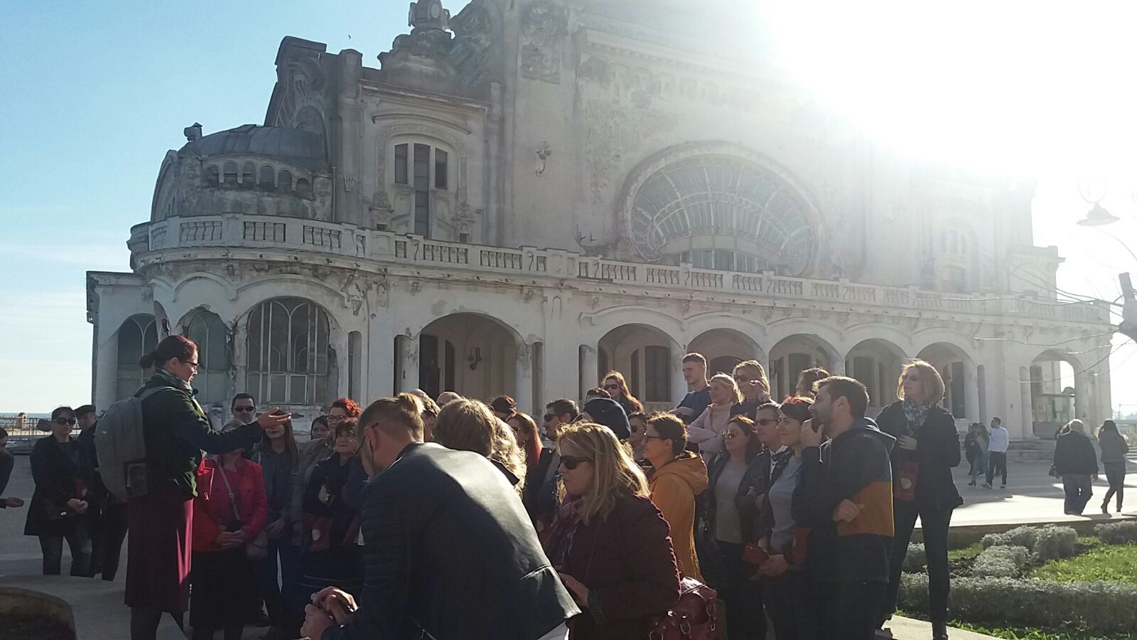 Punctul de plecare a fost la statuia Mihai Eminescu. În plimbarea în aer liber, într-o zi frumoasă de noiembrie, cei prezenți au străbătut zona peninsulară a orașului. Astfel, turul „Poveștile Dobrogei în pași de vin” a pornit de la statuia lui Eminescu, prima oprire fiind la Cazino unde a fost prezentat vinul dobrogean. De acolo participanții la eveniment s-au oprit la Catedrala Arhiepiscopală Sf. Petru și Pavel, la situl arheologic de lângă ea, la Muzeul Ion Jalea, la Casa Embiricos, Biserica Româno – Catolică Sf. Anton de Padova, apoi la Hotel Intim, la Club Britannia, Casa cu Lei, la Moscheea Carol, iar la final în Piața Ovidiu.