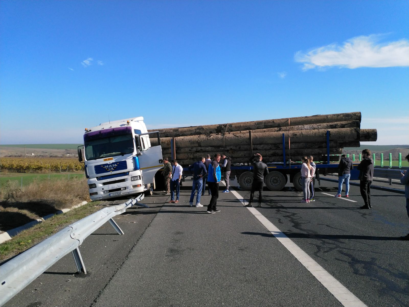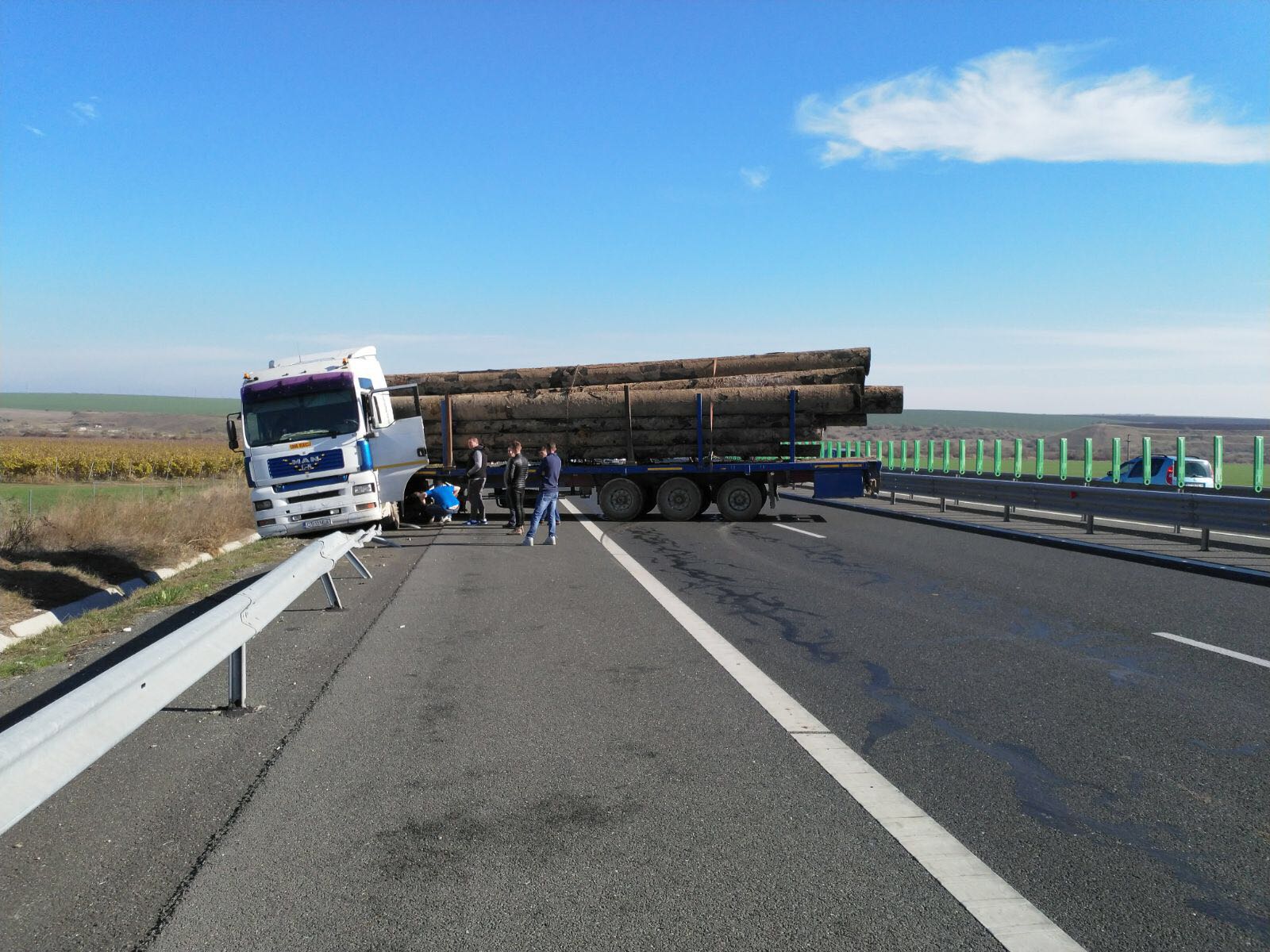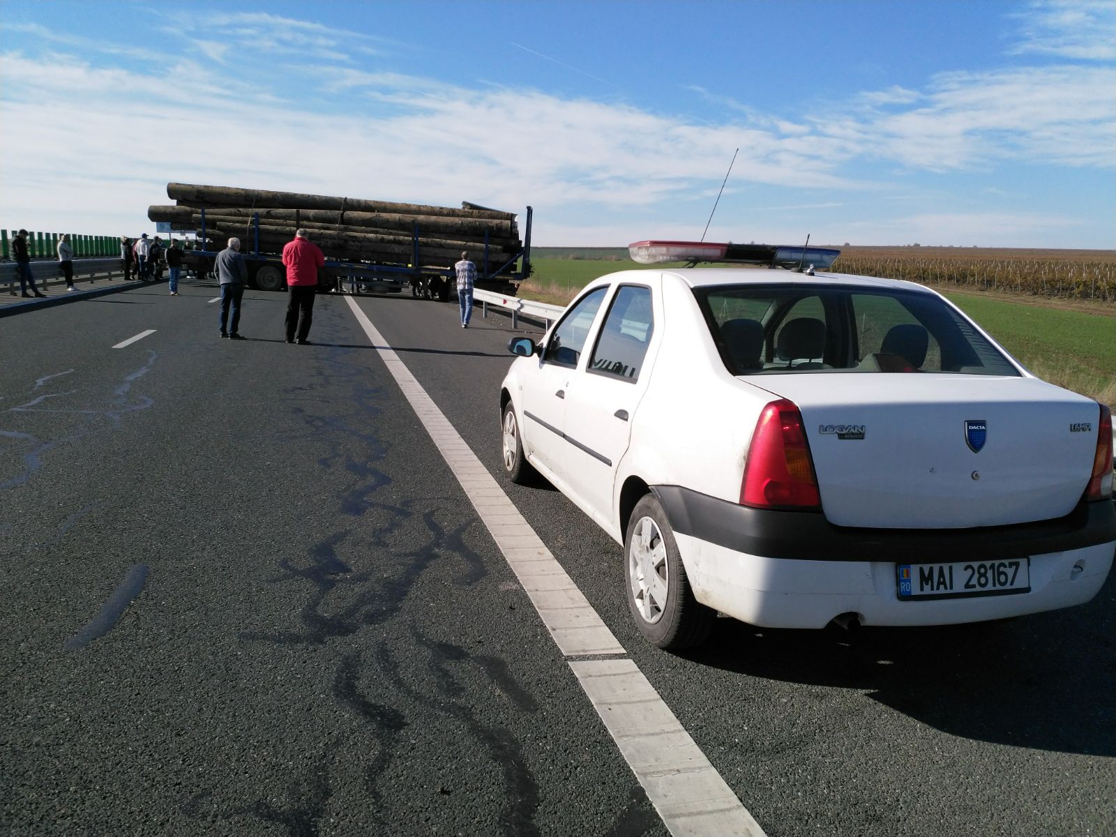 FOTO: Trafic BLOCAT pe Autostrada Soarelui din cauza unui TIR