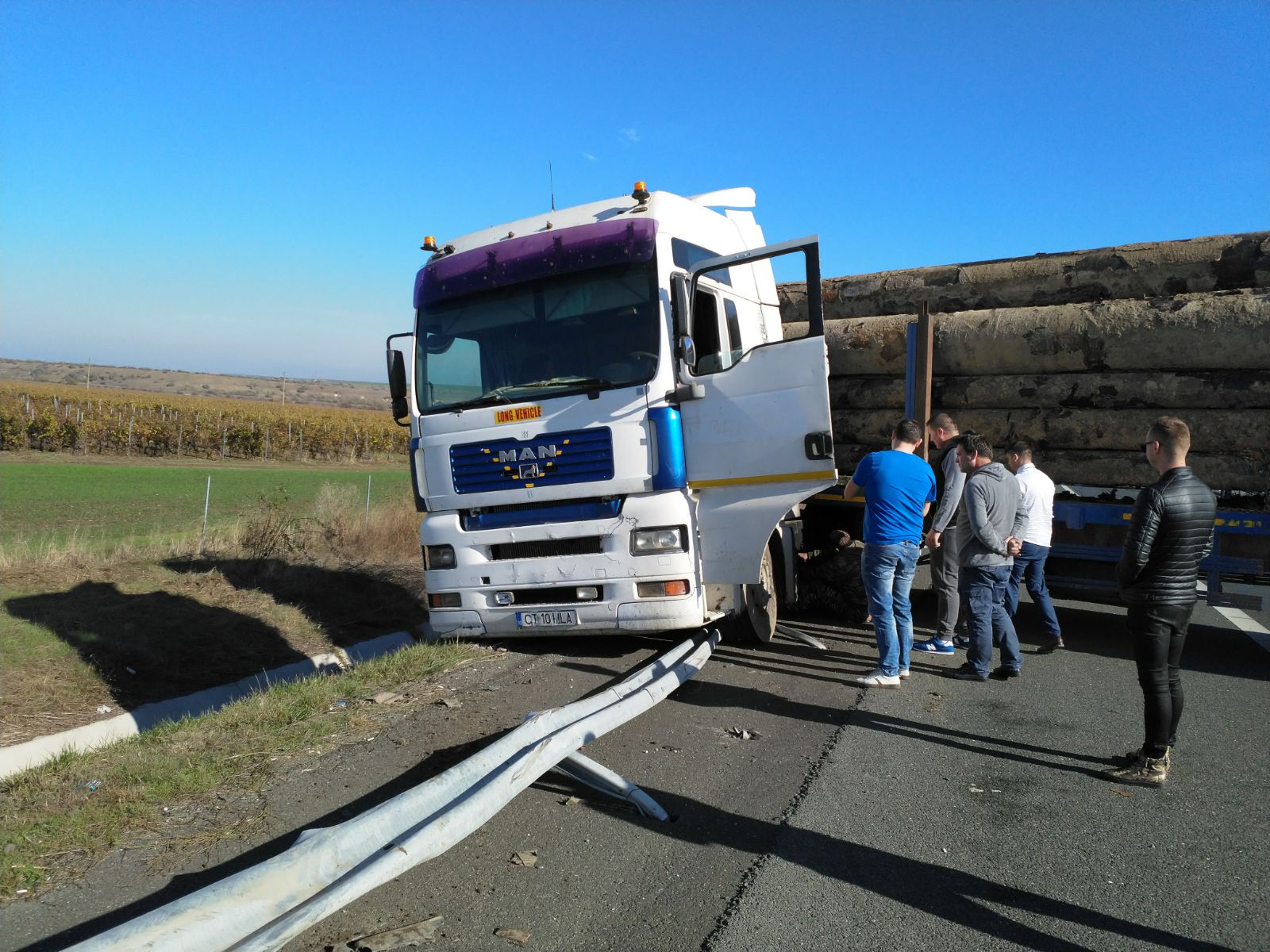 Autotrenul încarcat cu mai multe conducte s-a oprit de-a curmezișul pe partea carosabilă, la kilometrul 203, între localitățile Murfatlar și Medgidia. TIR-ul prezenta probleme tehnice la sistemul de frânare