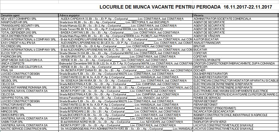 Oferta din aceste zile de pe piața muncii din Constanța cuprinde multe alte posturi libere – aproape 600, după cum reiese din situația transmisă de Agenția Județeană pentru Ocuparea Forței de Muncă din Constanța: