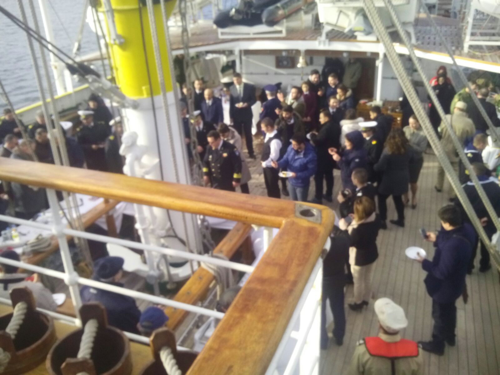 La bord au fost studenți, profesori, foști absolvenți atât de la secția militară cât și de la secția civilă, foști comandanți de navă și ai Statului Major al Forțelor Navale, dar și istorici.