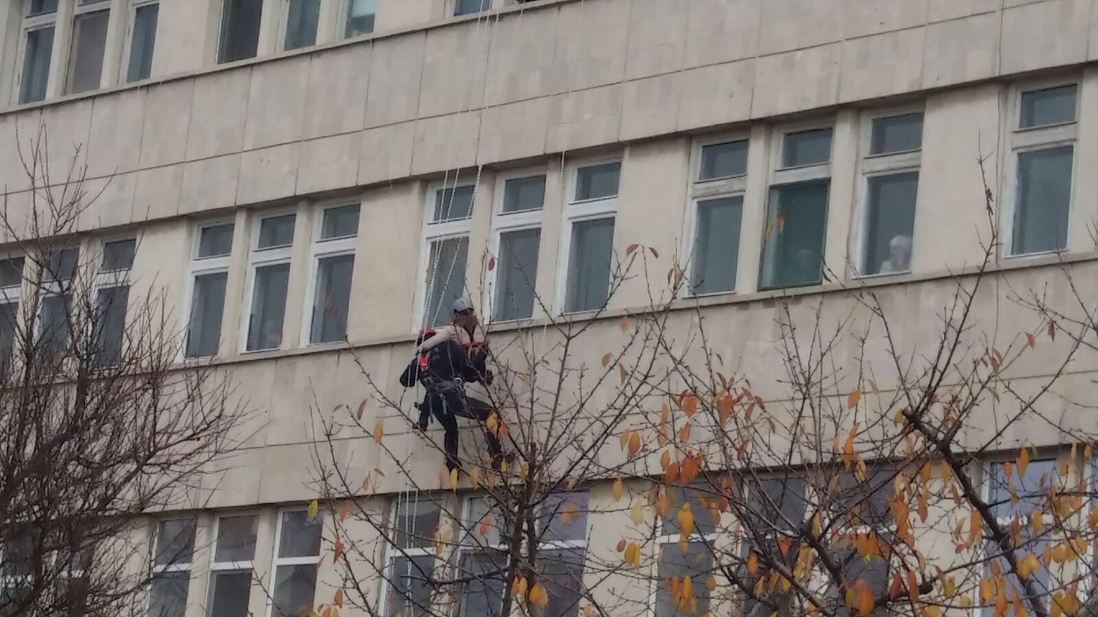 Pompierii sunt ajutați și o echipă de alpiniști care evacuează persoanele blocate la înălțime.