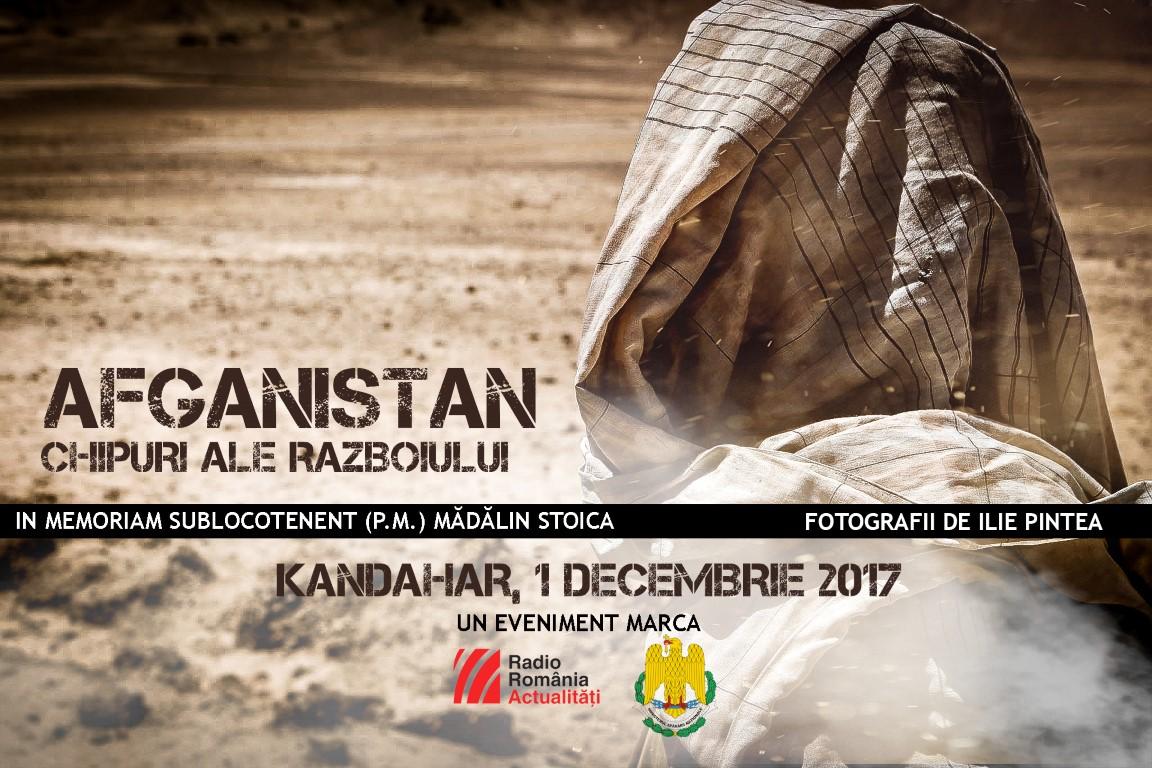 Nu mai puţin de 50 de fotografii realizate în Afganistan vor putea fi văzute chiar în baza militară de la Kandahar, în cadrul unei expoziţii eveniment, realizată de Radio România în parteneriat cu Ministerul Apărării Naţionale. Evenimentul este dedicat memoriei sublocotenentului post mortem Mădălin Stoica, militar al Batalionului 280 Infanterie Focşani, căzut la datorie în teatrul de operaţii la 15 septembrie anul acesta, iar vernisajul va avea loc chiar de Ziua Naţională a României, în prezenţa unor înalţi oficiali ai Coaliţiei.