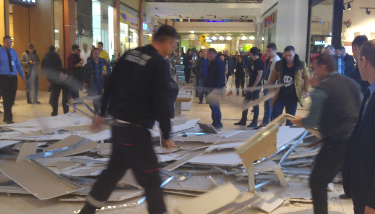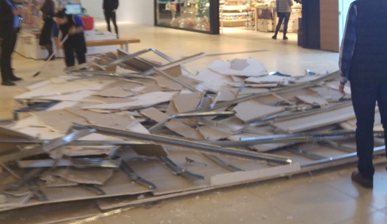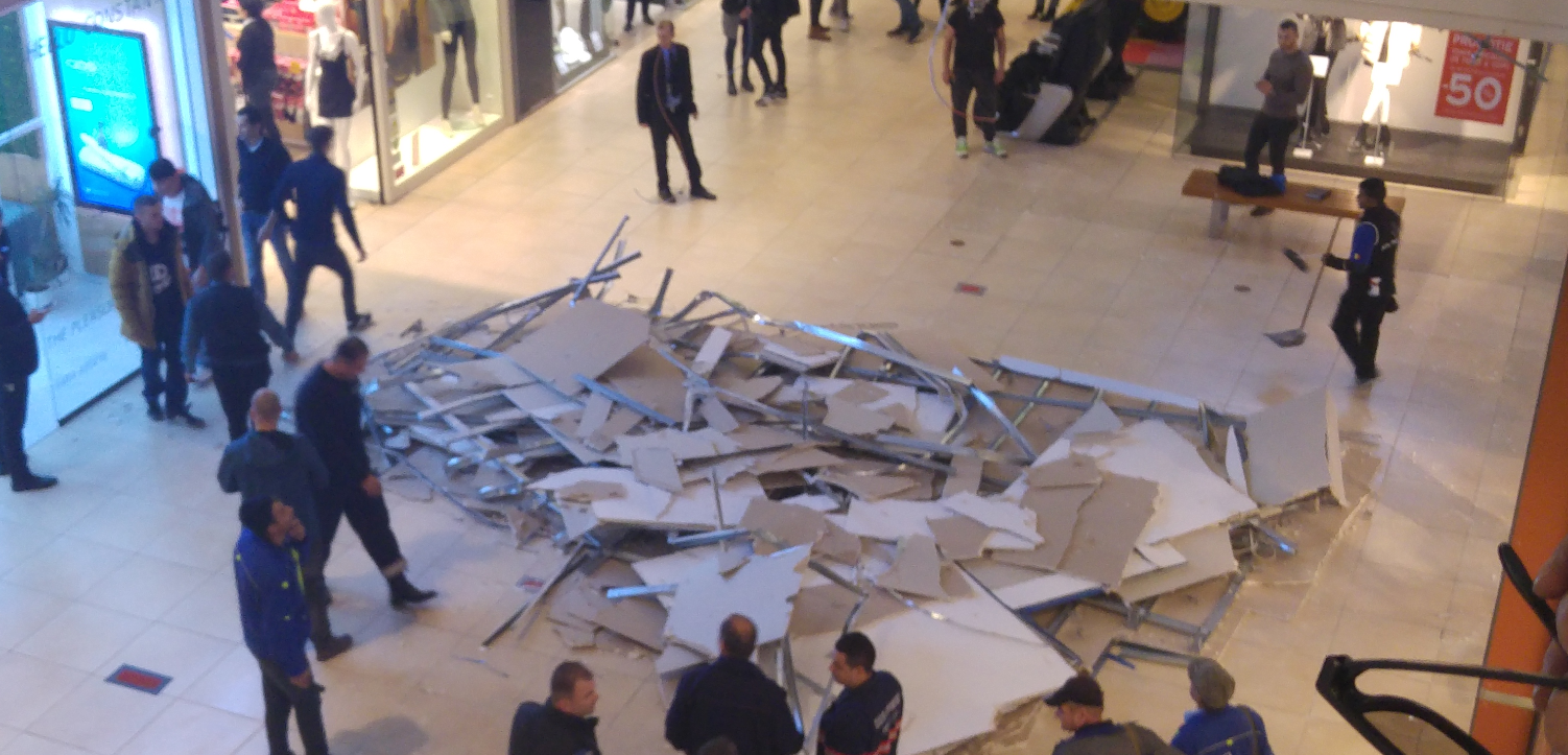 O porțiune a tavanului fals din centrul comercial City Park Lake, s-a părabusit în această seară.