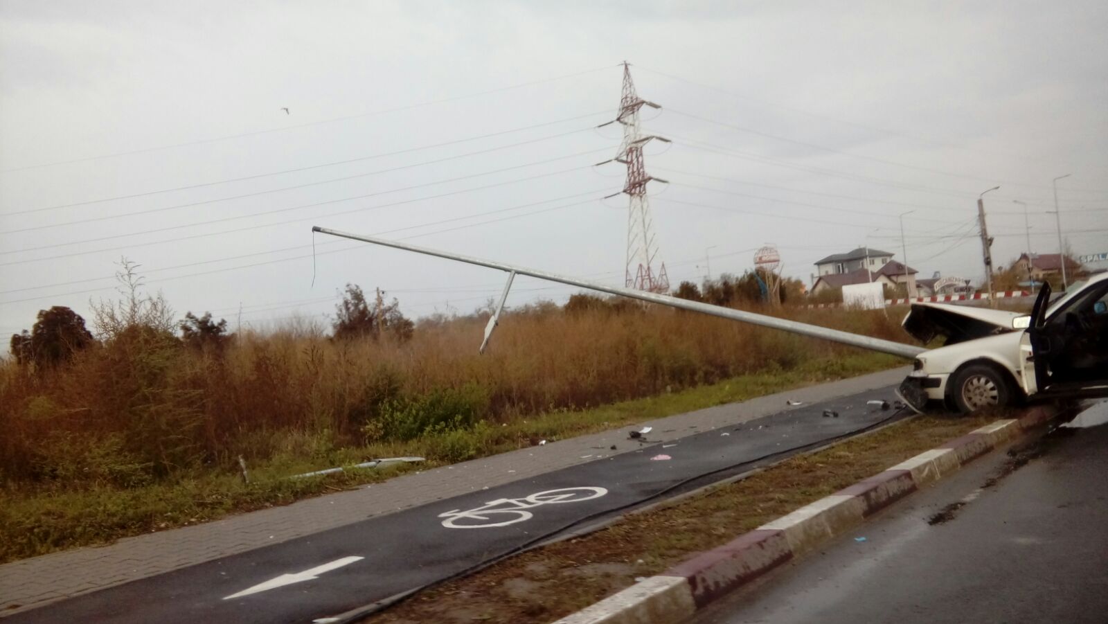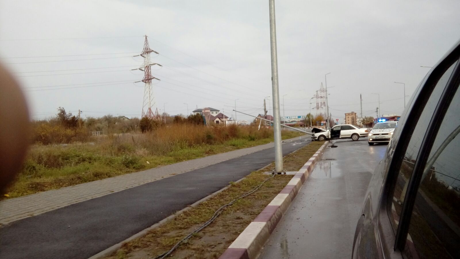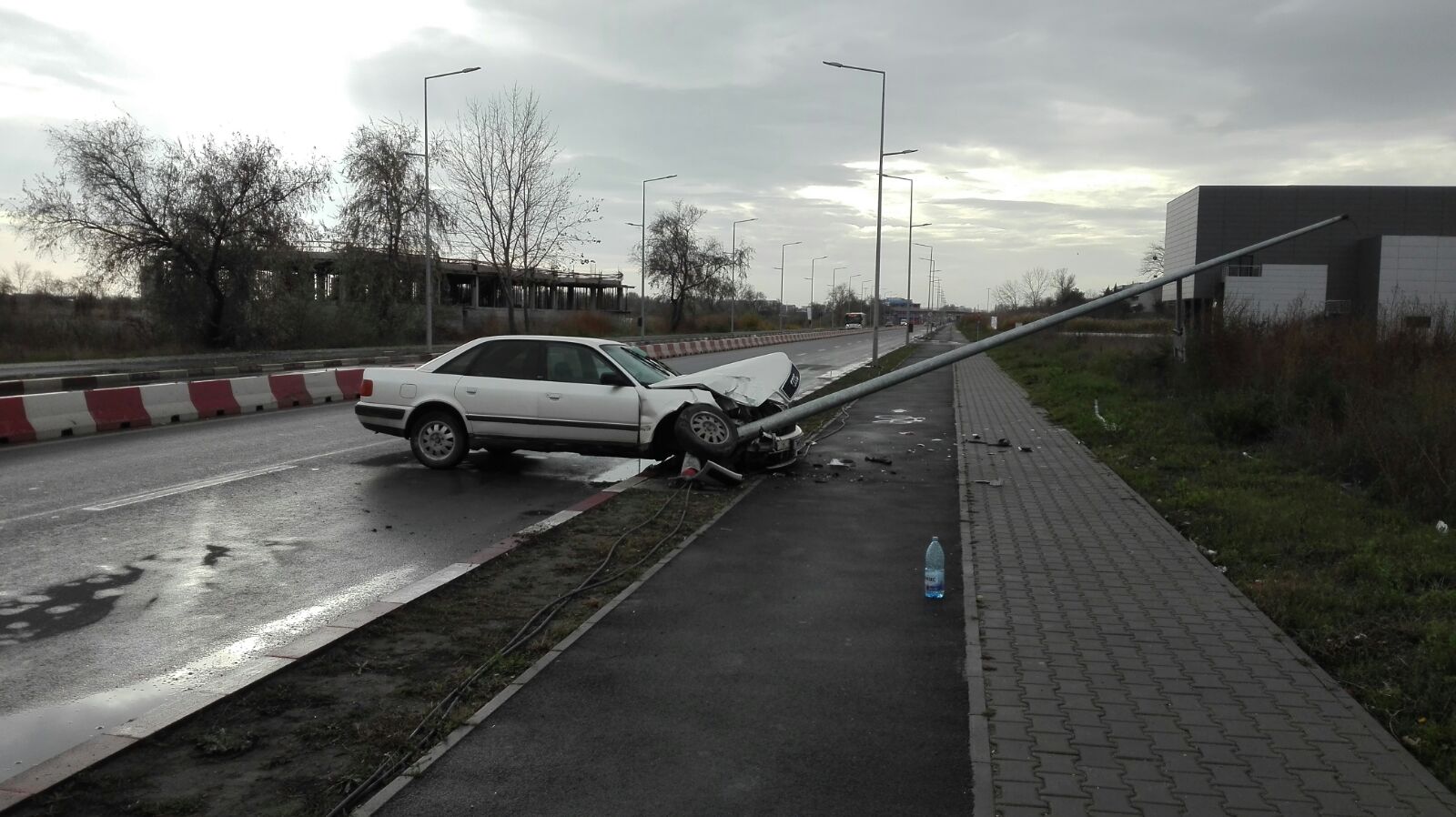 NĂVODARI/FOTO: O mașină a rupt un stâlp de iluminat – update