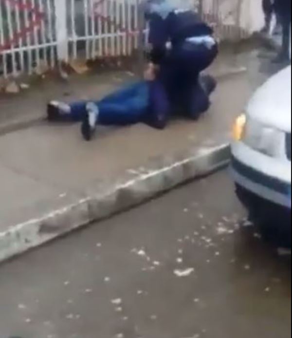 În imaginile apărute pe Facebook se observă cum un șofer este încătușat de un polițist. Pe fundal se aude cum oamenii care au asistat la toată acțiunea îl întreabă pe polițist dacă îl arestează pe șofer pentru că a parcat pe o trecere de pietoni.