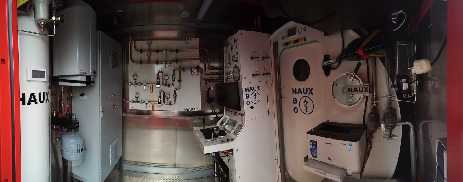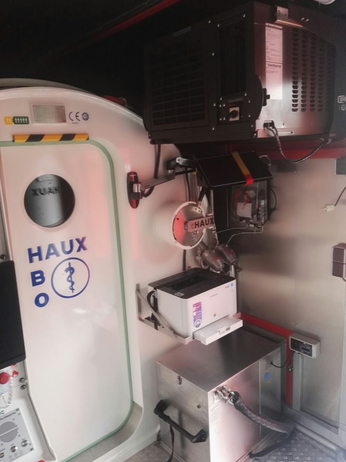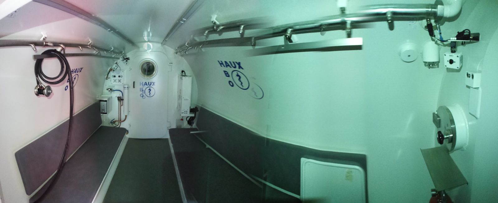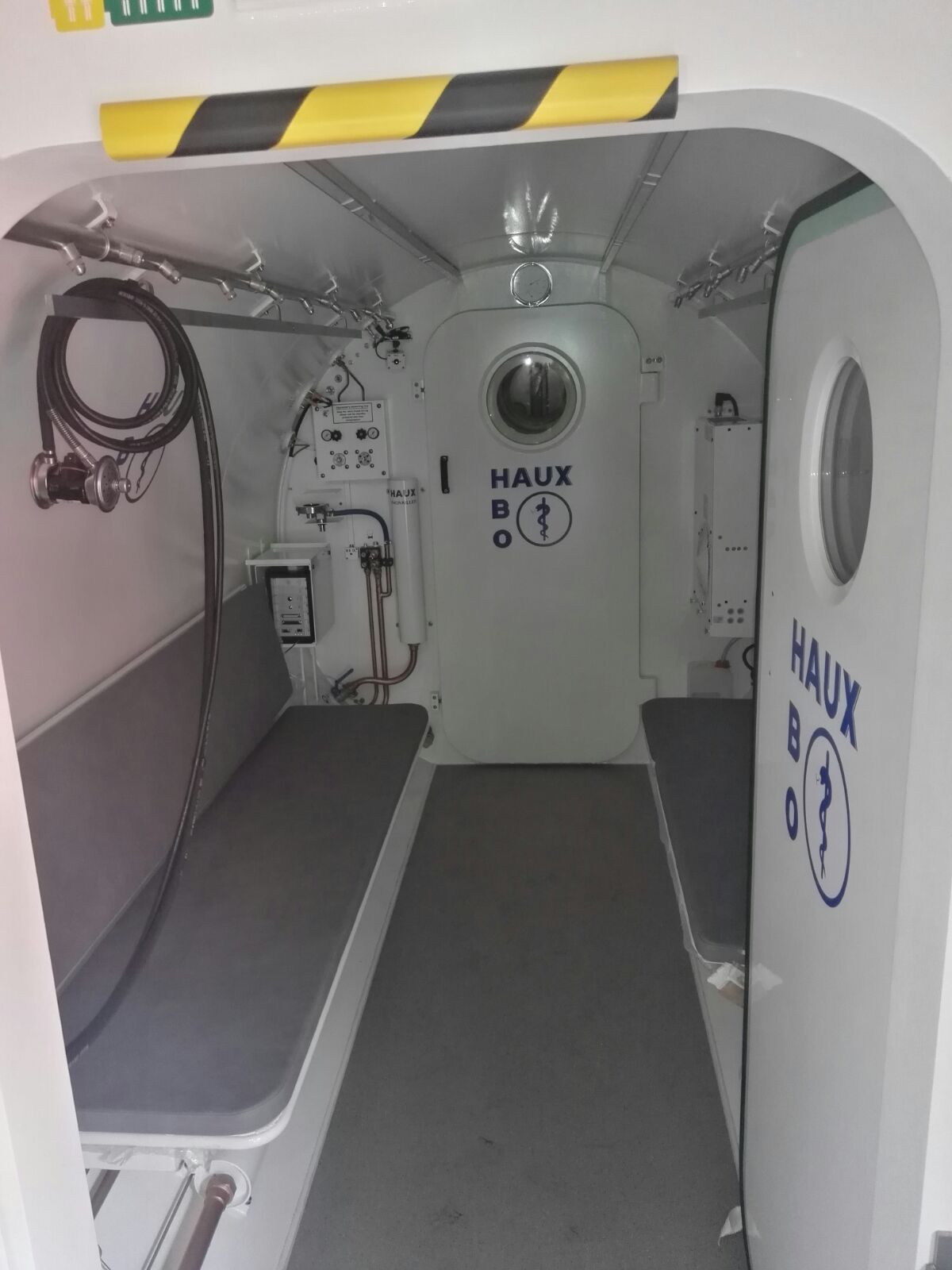 Are o capacitate de 7 locuri din care 5 în camera principală (4 în șezut și unul pe targă) și 2 locuri în sas -ul de acces. Tratamentul se poate administra concomitent la cele 5 persoane din camera principală.