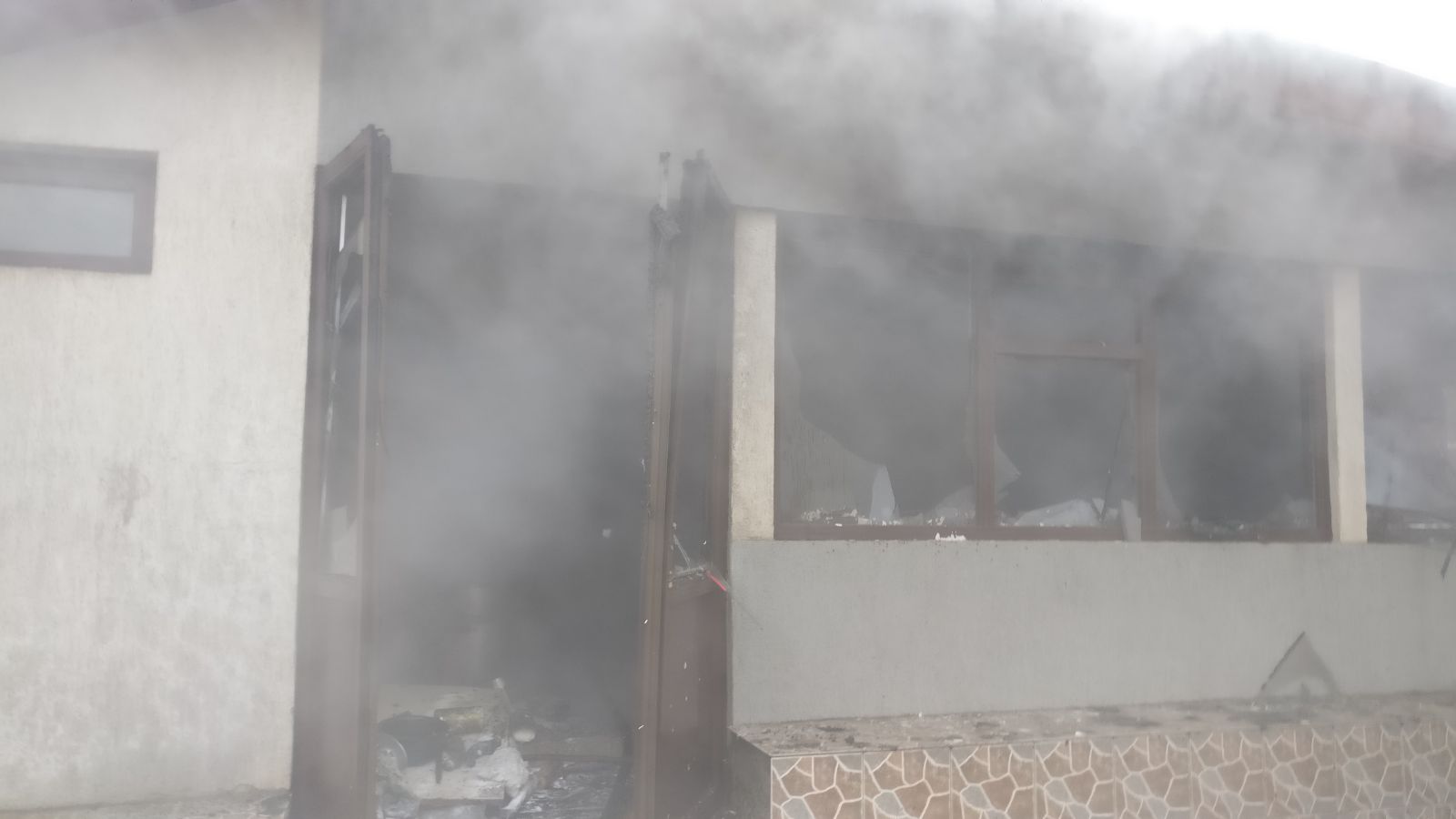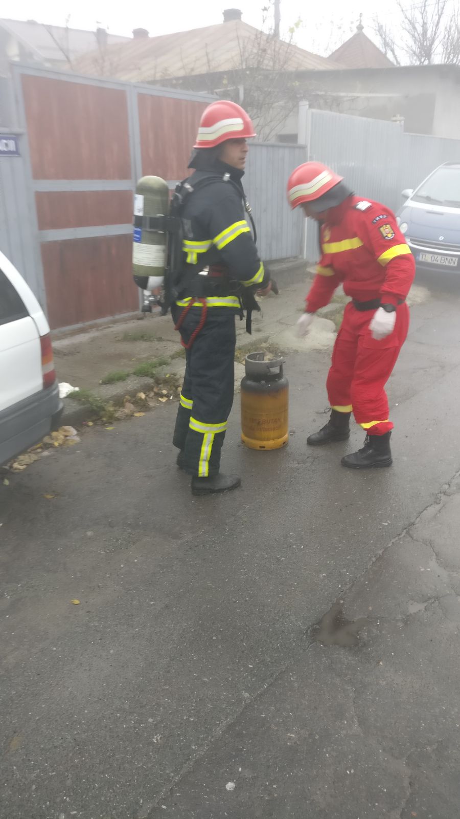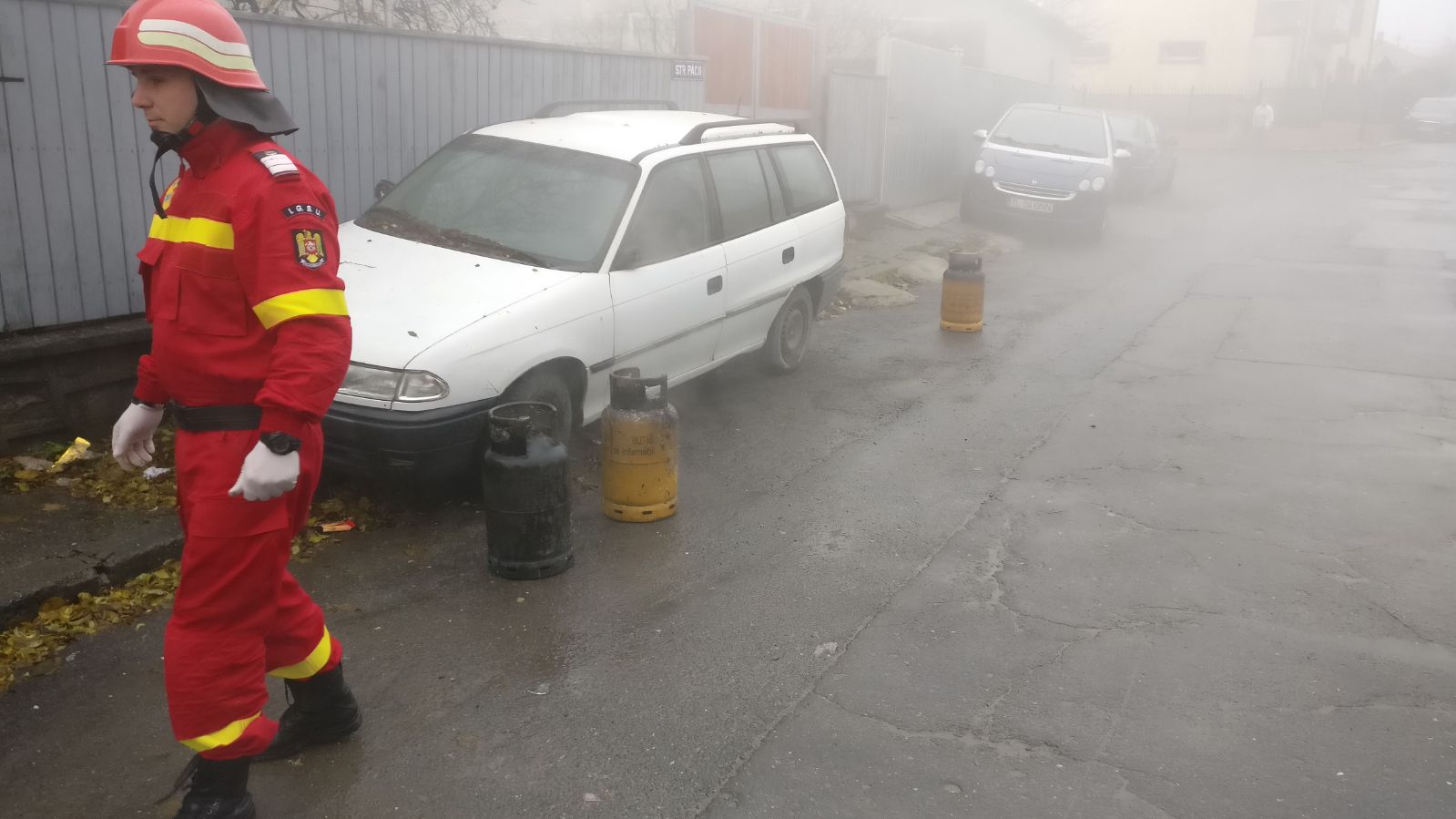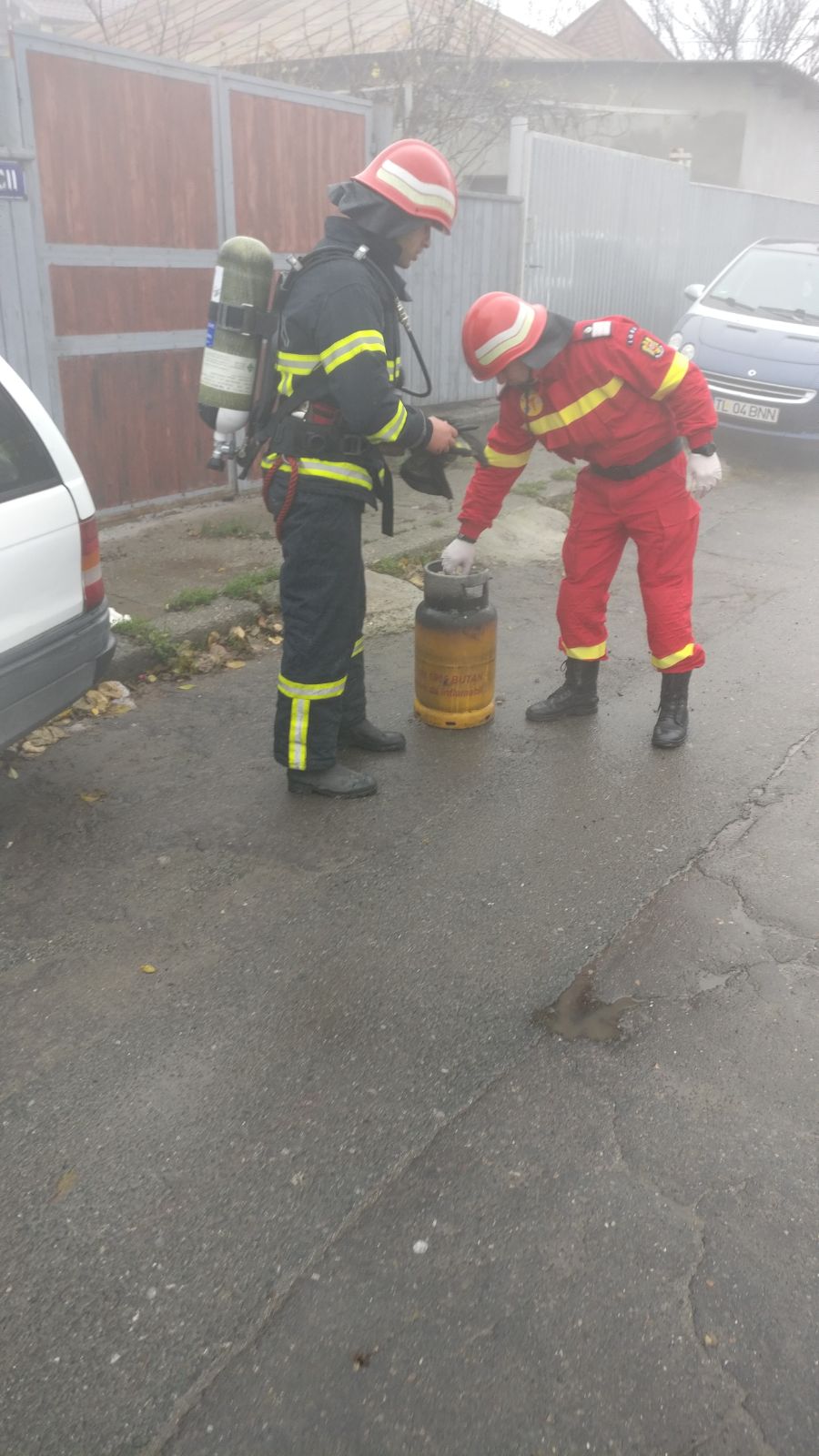Pompierii au scos din casă trei butelii.