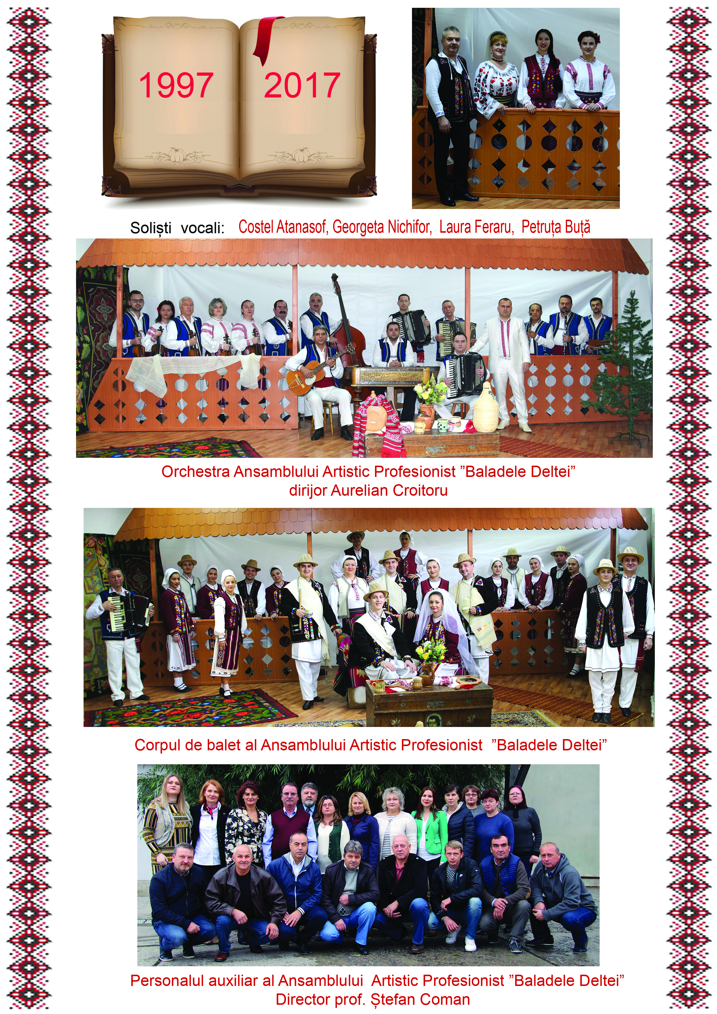 1. Ansamblul Artistic Profesionist „Baladele Deltei” are în componenţă 24 dansatori, 16 instrumentişti şi 4 solişti vocali: Georgeta Nichifor, Costel Atanasof, Petruța Ecaterina Buță, Laura Ileana Feraru și colaborează cu soliștii vocali Georgiana Pandele și Laura Mocăniță. Coregrafia este realizată de : maestru coregraf artist emerit- Theodor Vasilescu, maestru coregraf – Marin Barbu, Centrul Naţional Bucureşti, maestru coregraf –Ştefan Coman, conducerea muzicală fiind asigurată de Aurelian Croitoru.