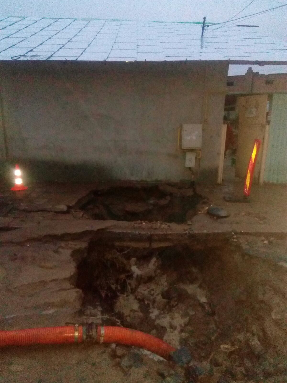 Apelul la 112 a fost făcut de colegul nostru, Plutonier adjutant Badiu Cristian, care locuiește în casa din dreptul gropii provocate de surparea străzii. În jurul orei 04.45, colegul nostru a fost alertat de alarma autoturismului său, care începuse să se scufunde. S-a intervenit cu două autospeciale de stingere cu apă și spumă și 9 subofițeri”, potrivit reprezentanților ISU Tulcea.