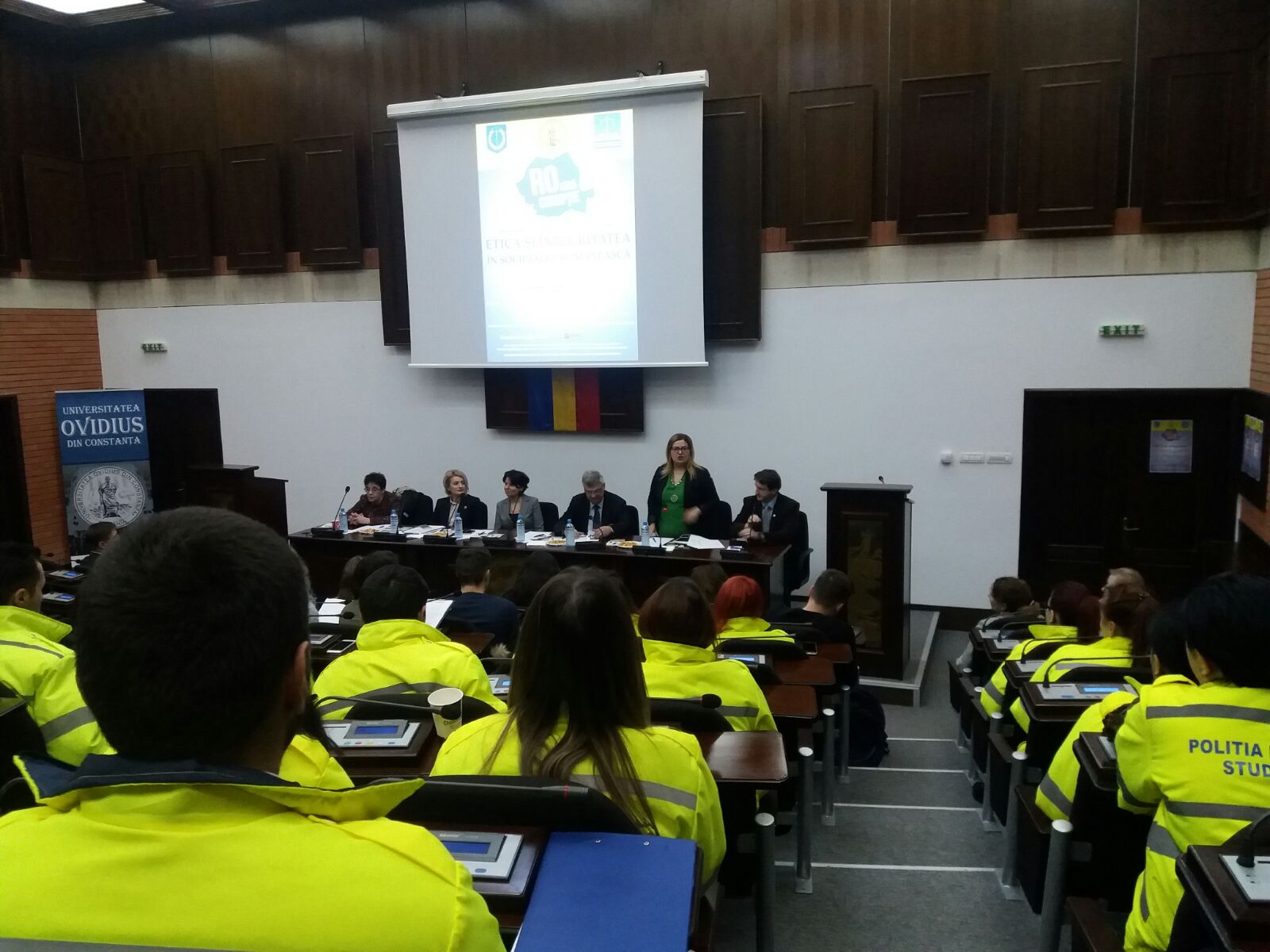 Ziua Internațională Anticorupție este celebrată în fiecare an pe data de 9 decembrie. În acest context, Direcția Generală Anticorupție (DGA) prin Serviciul Județean Anticorupție (SJA) Constanța, în parteneriat cu Universitatea „Ovidius” din Constanța organizează a doua ediţie a sesiunii de comunicări ştiinţifice – „Etica şi integritatea în societatea românească”, dar şi prima ediţie a concursului de dezbateri şi oratorie „Etică şi integritate: Ovidius dezbate”.