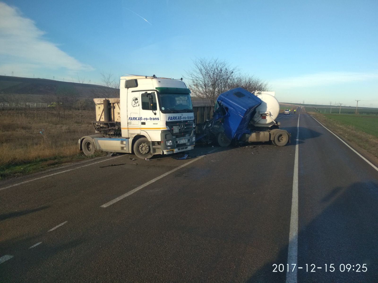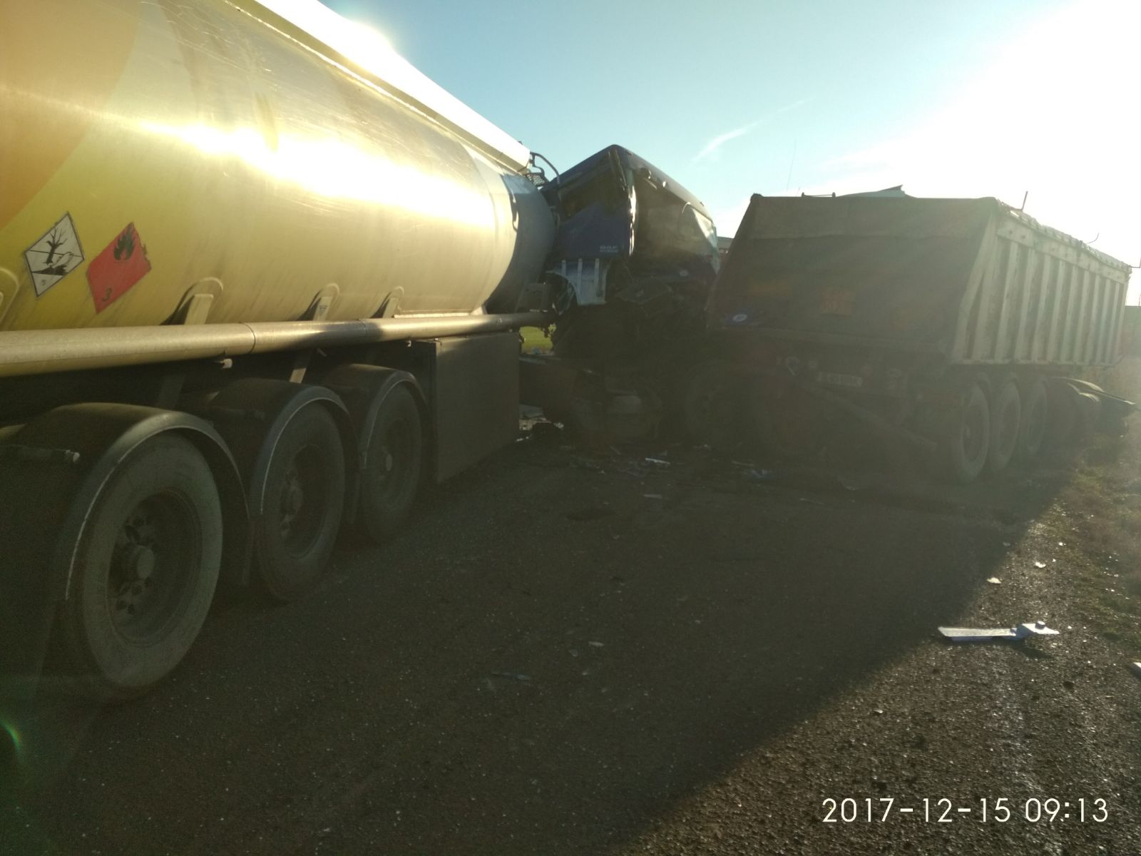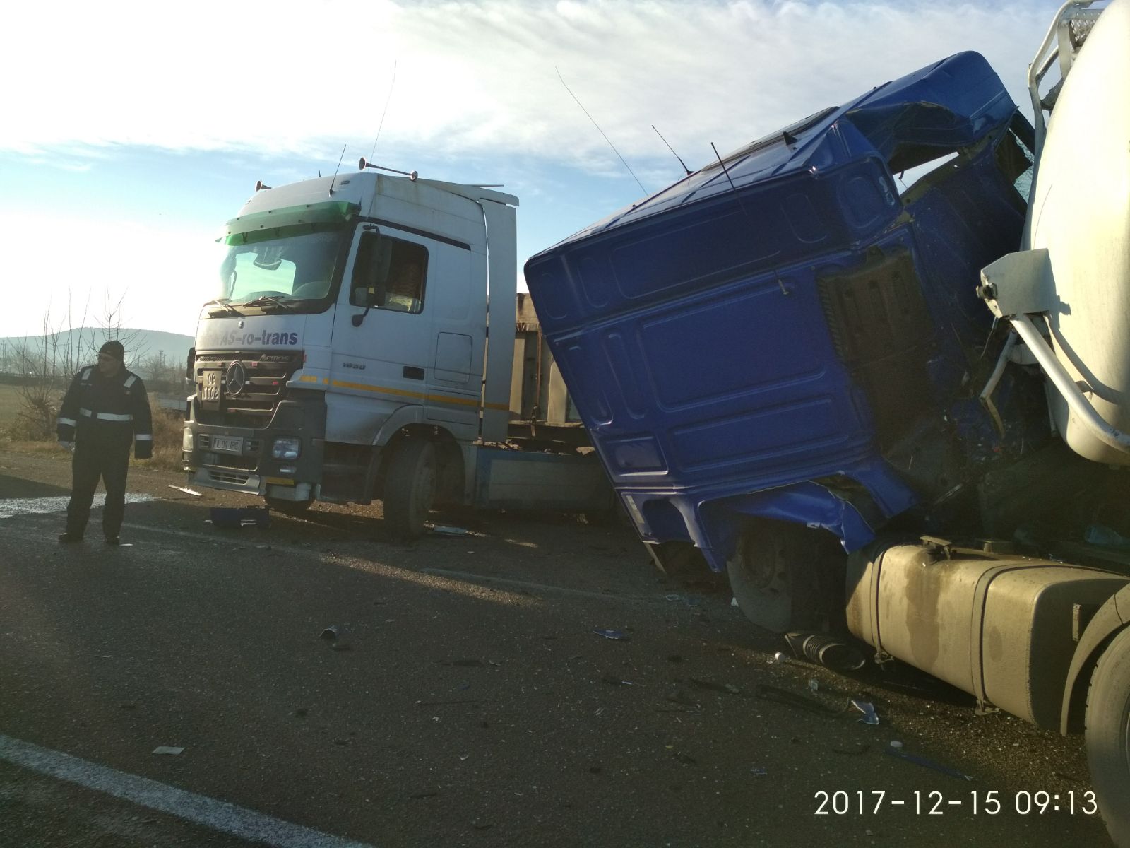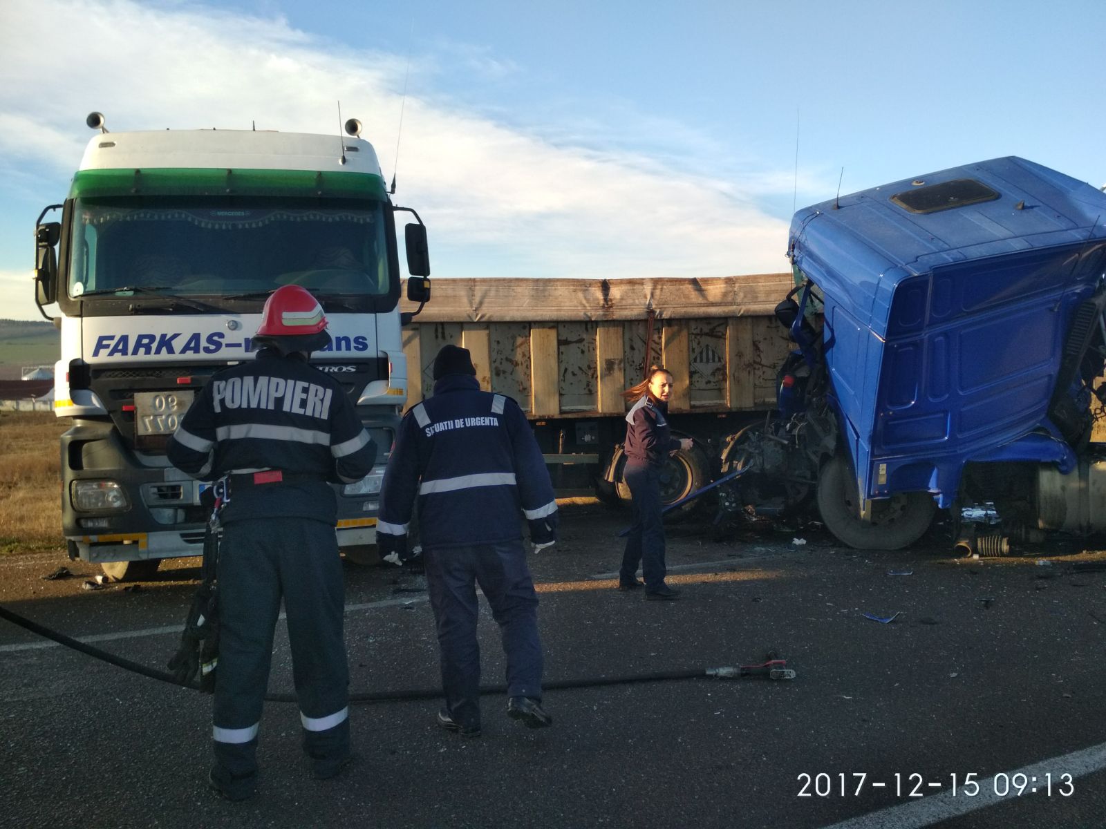 Conform primelor date, în accident sunt implicate o cisternă și o basculantă.