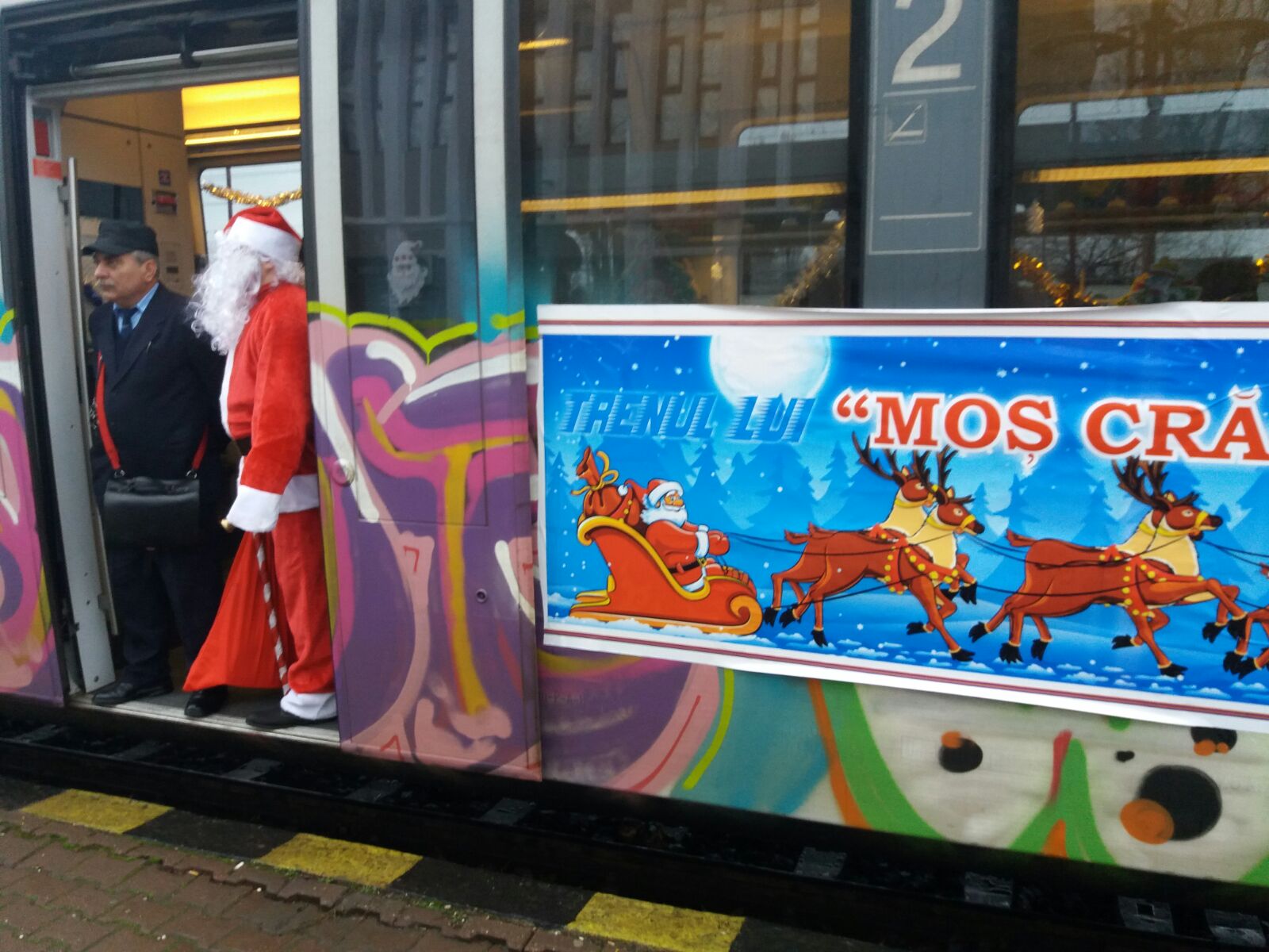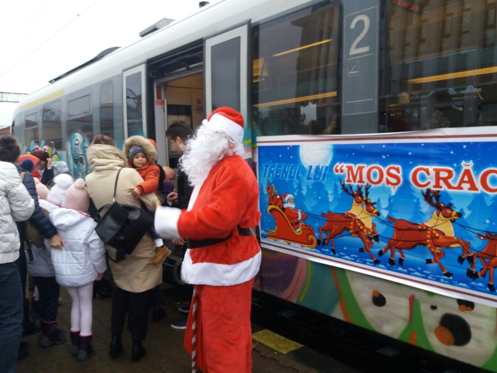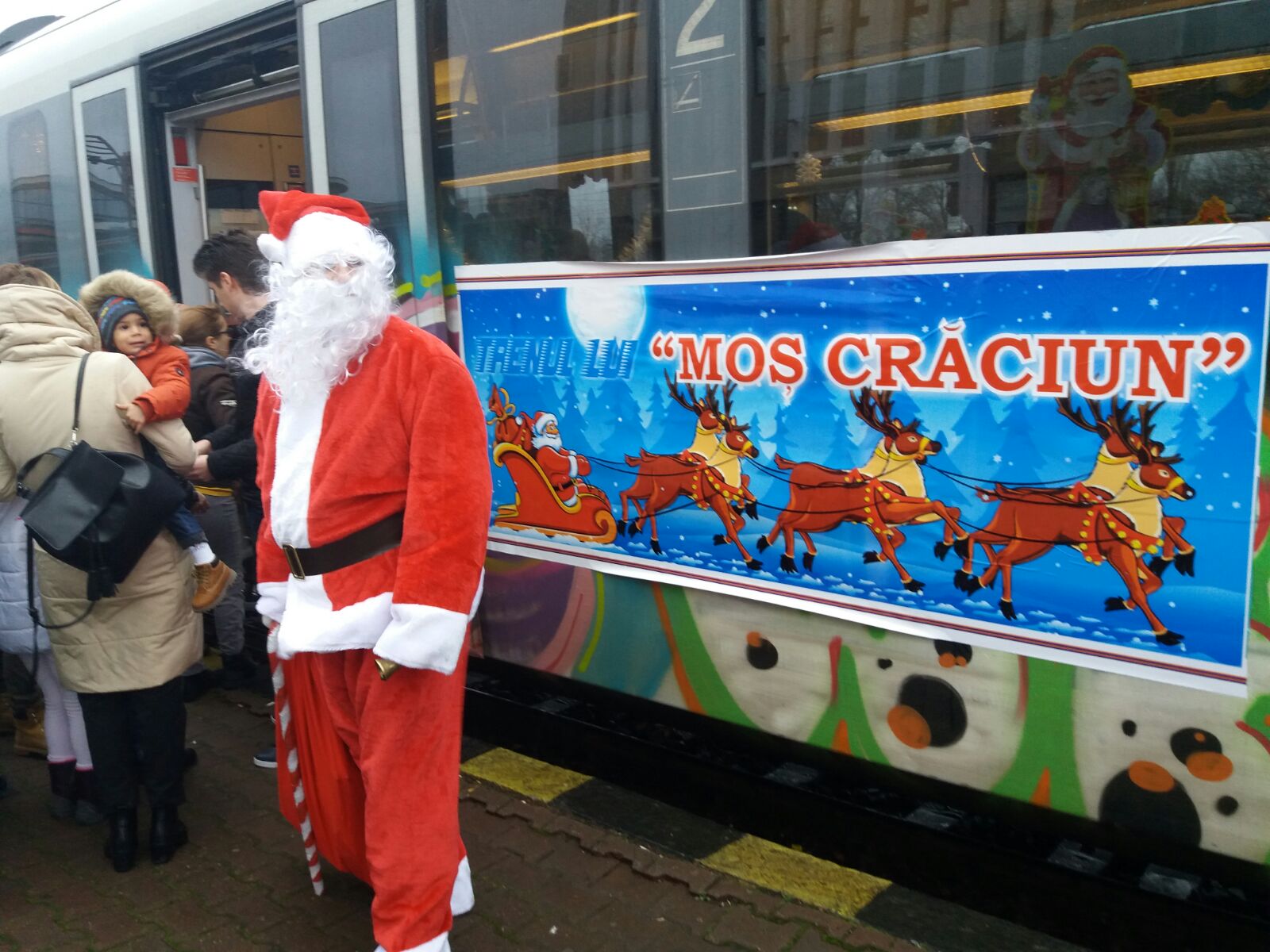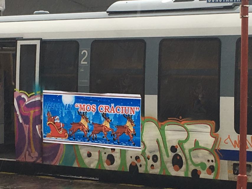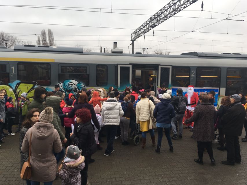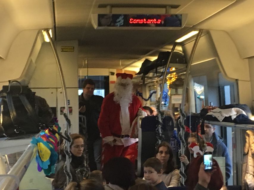 Moș Crăciun a venit cu trenul în această dimineață la ora 10.30, la gara din Constanța.