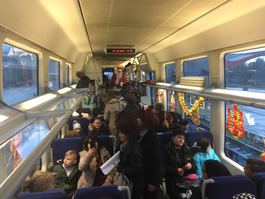 O garnitură special amenajată i-a plimbat pe aceștia până la Eforie, iar apoi când s-au întors în Gara Constanța au participat la un spectacol de colinde oferit de elevii de la Colegiul de Arte „Regina Maria”.