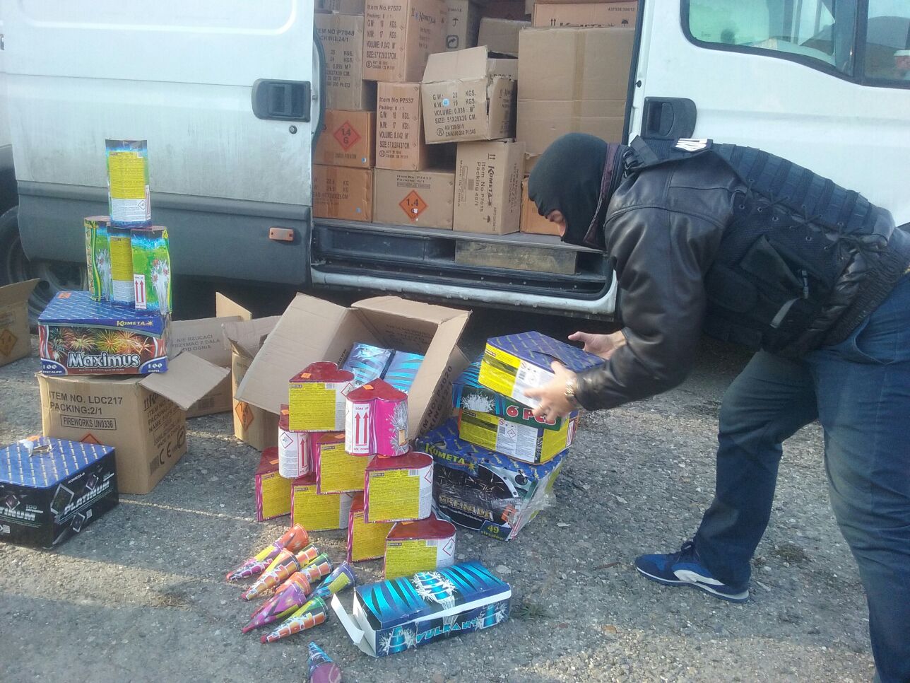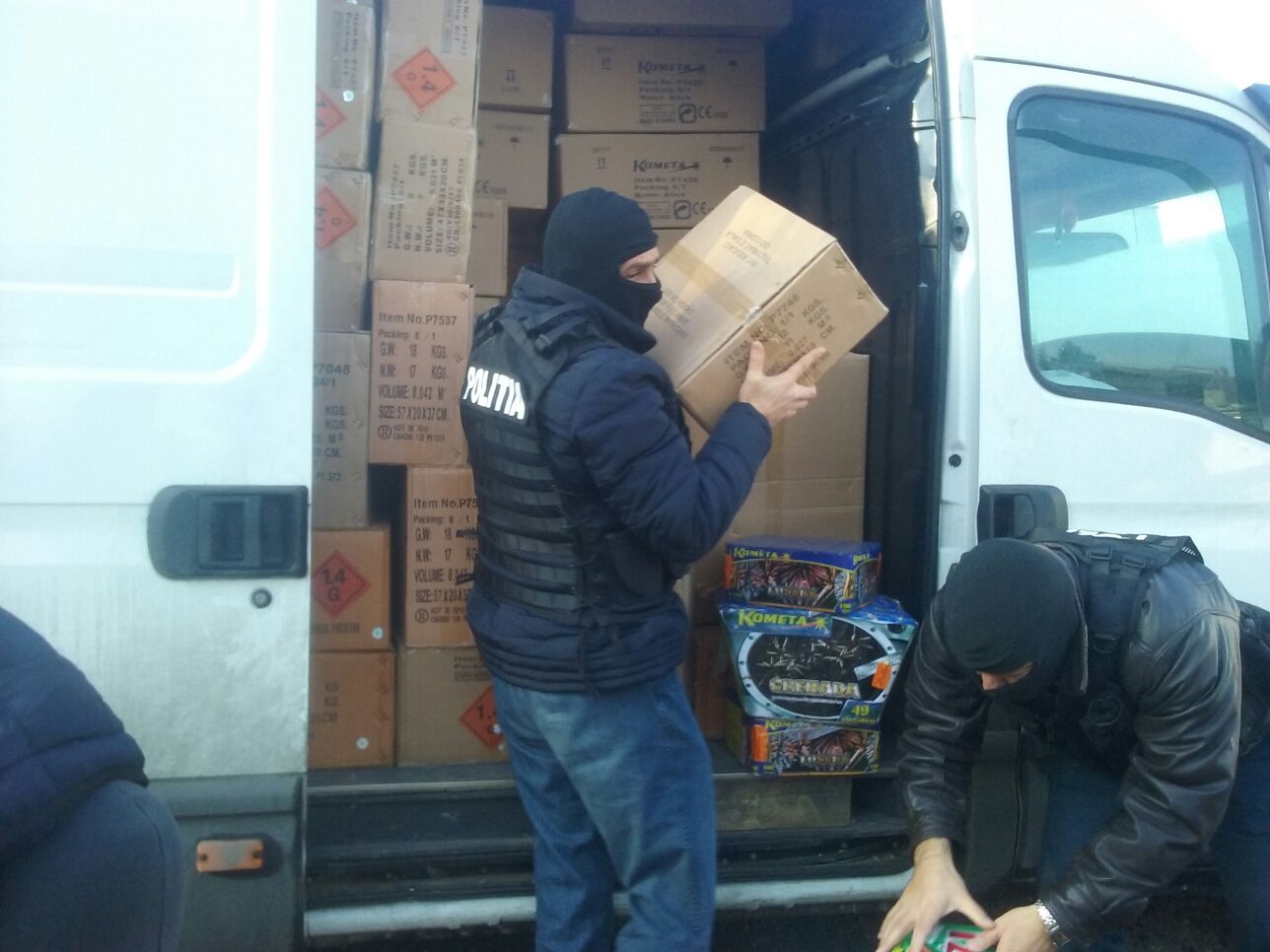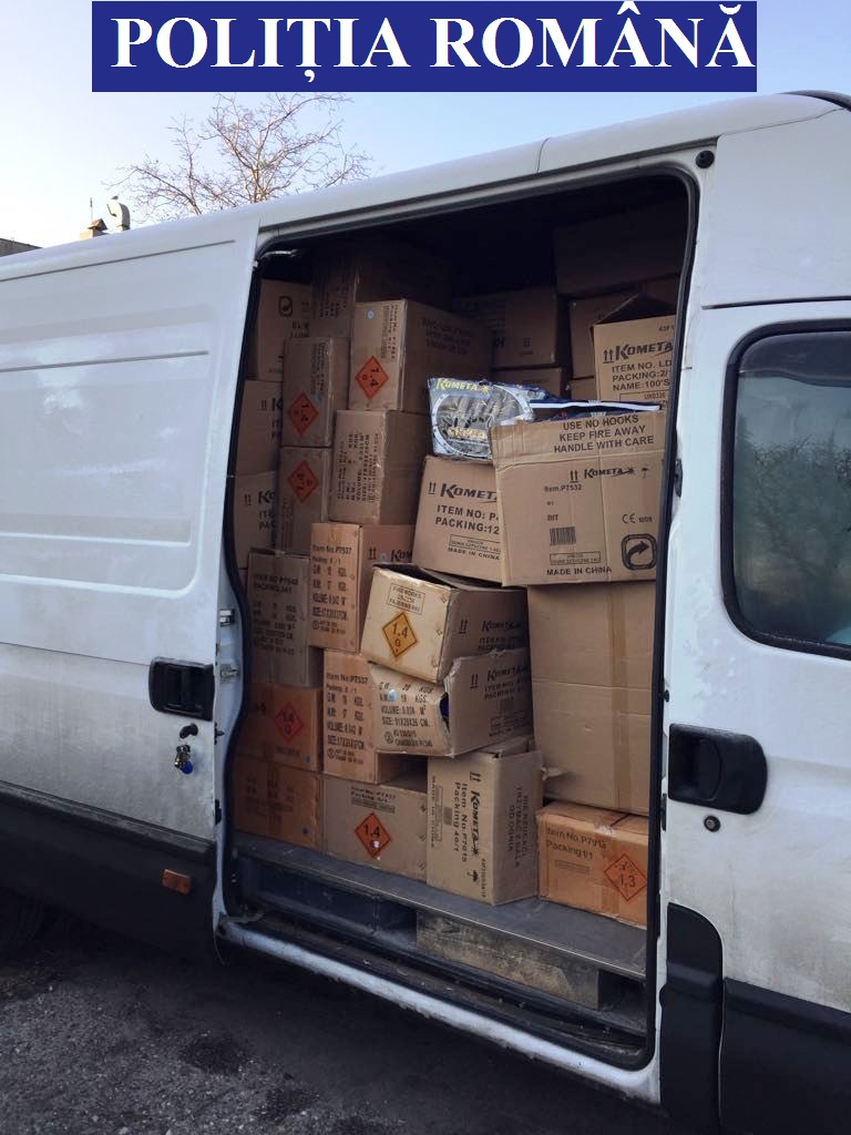 Persoanele în cauză au fost depistate în localitatea Eforie Nord, în timp ce tranferau dintr-o autoutilitară în alta, mai multe cutii cu obiecte pirotehnice, pe care aceștia ar fi intenționat să le comercializeze ilegal, mai informează polițiștii.