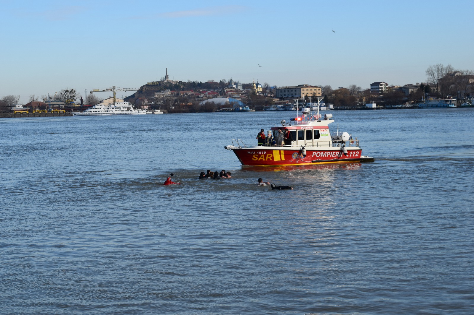 TULCEA/FOTO: Un pompier a recuperat crucea aruncată de Bobotează în Dunăre