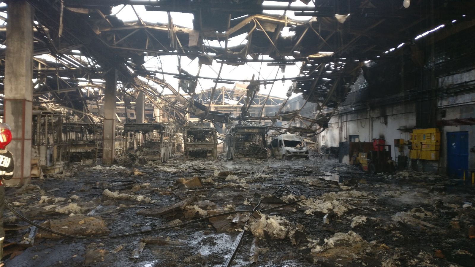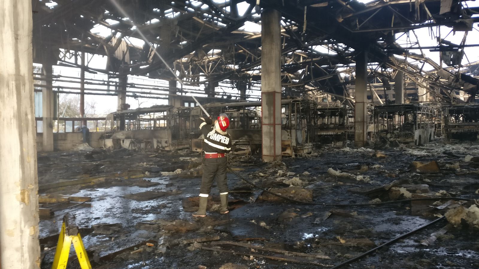 Un număr de 15 autobuze şi un microbuz, adică circa 50% din parcul de autovehicule al societăţii Transport Public SA din oraşul Tulcea, au fost distruse în noaptea de joi spre vineri, în urma unui incendiu izbucnit în hala societăţii.