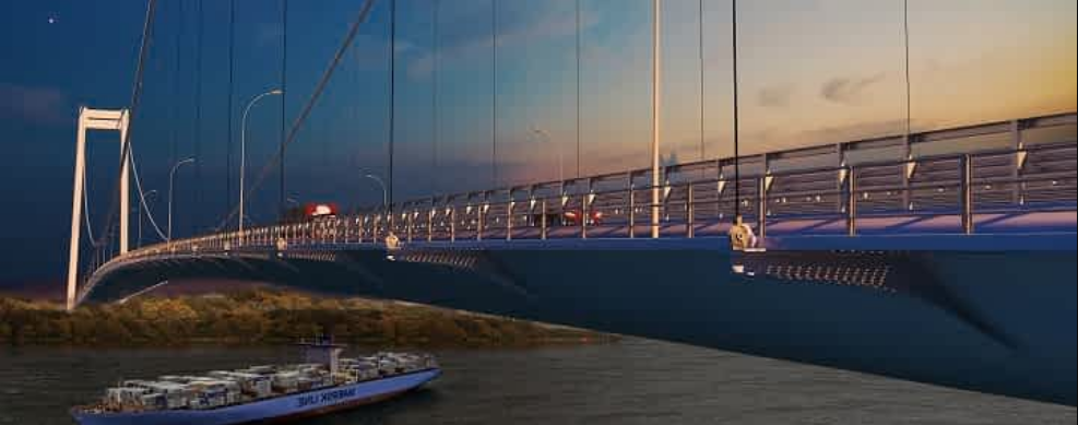 Podul suspendat va avea o lungime totală de de 1.974,30 m, o deschidere centrală de 1.120 metri și două deschideri laterale de 489,65 si 364,65 metri.