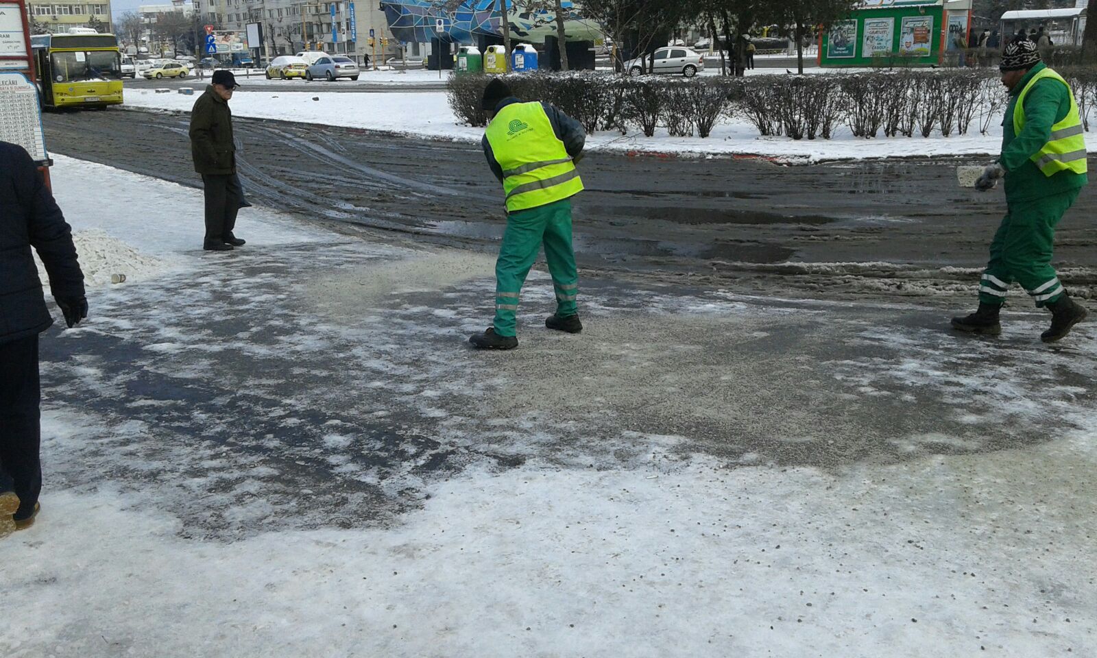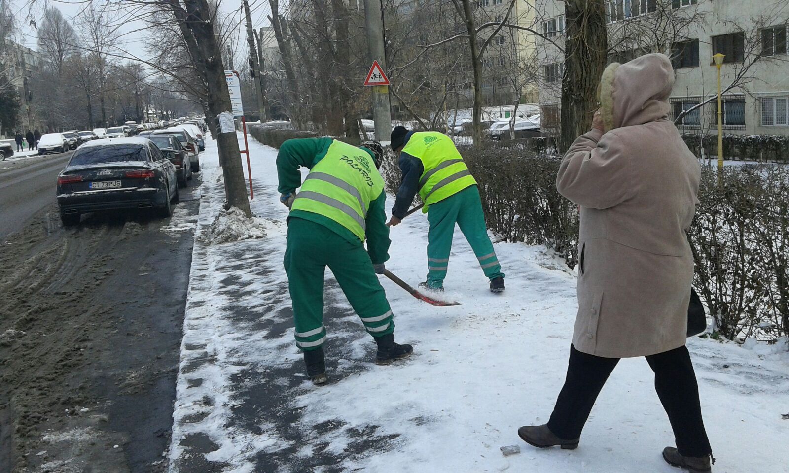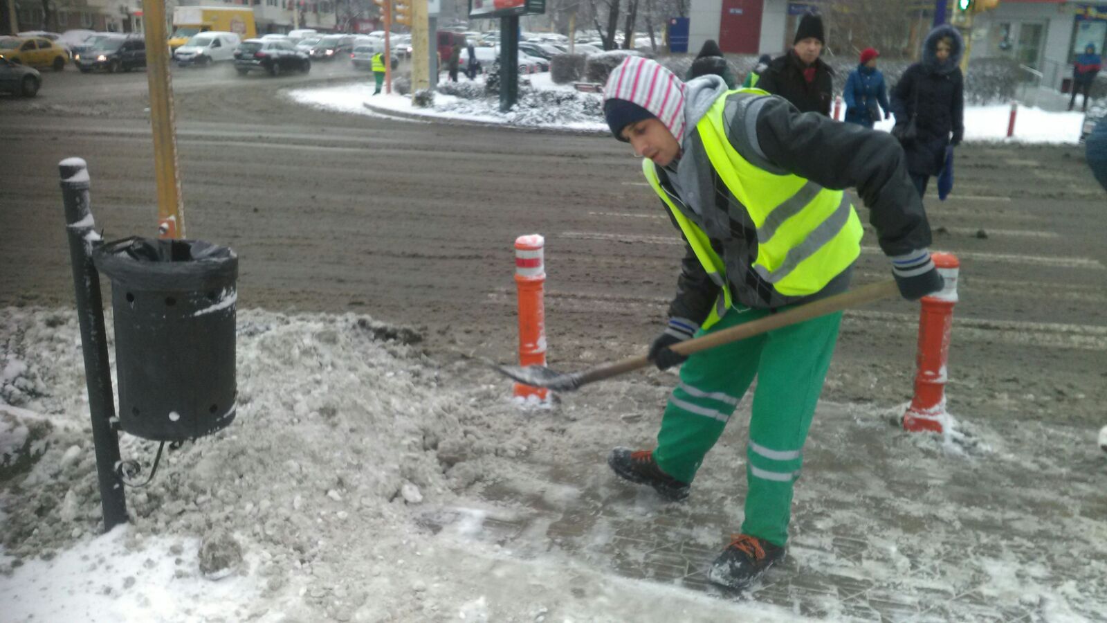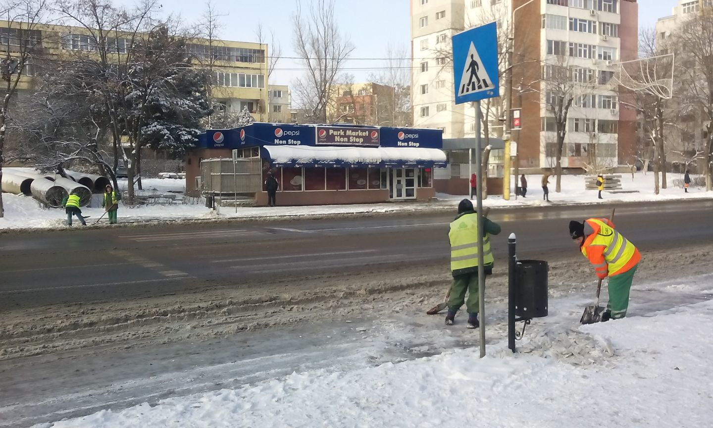 De asemenea, începând cu ora 07:00, 135 de angajați ai societății, repartizați în șase zone ale orașului, acționează pentru curățarea zăpezii și a gheții de pe trecerile de pietoni, pasaje pietonale, trotuare și din stațiile de autobuz. Alte 30 de persoane asistate social și persoane care prestează muncă în folosul comunității ajută la degajarea zăpezii de pe treptele Policlinicii Spitalului Clinic Județean de Urgență „Sf. Ap. Andrei“, ale Spitalului de Boli Infecțioase, unităților de învățământ, instituțiilor publice.