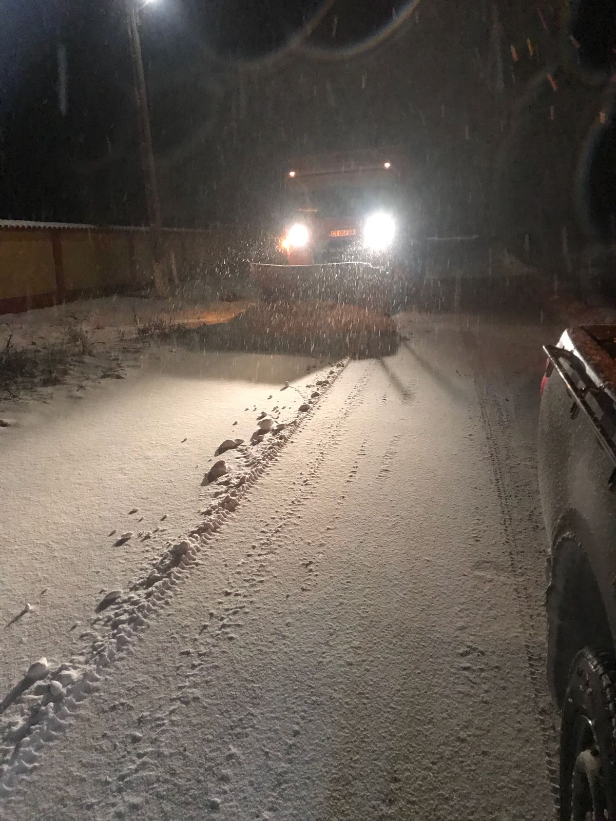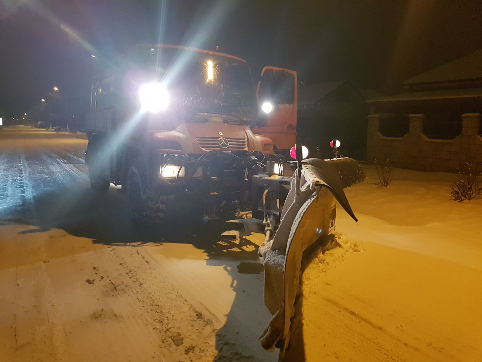 Utilajele Regiei împrăștie material antiderapant.