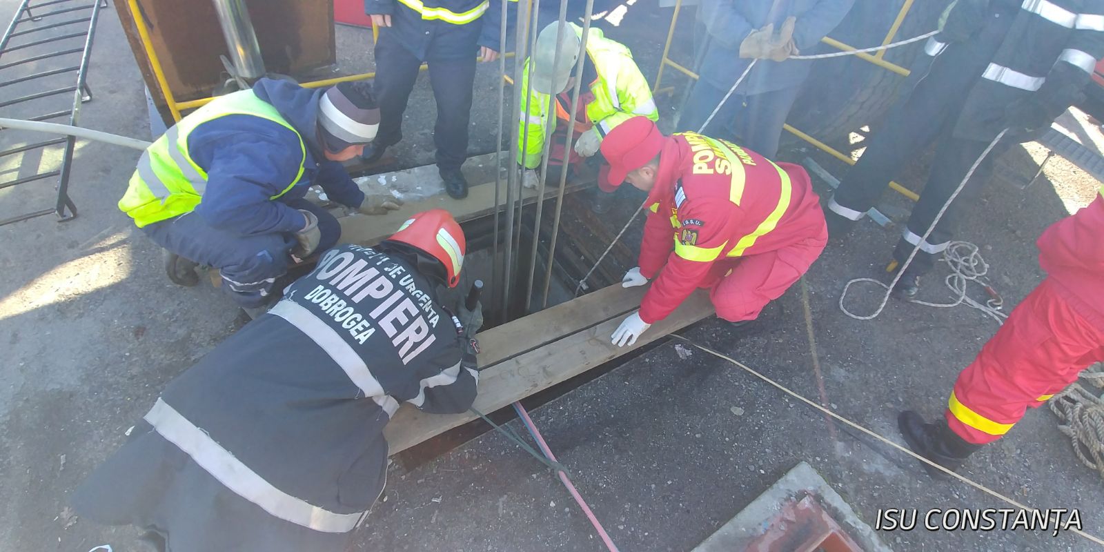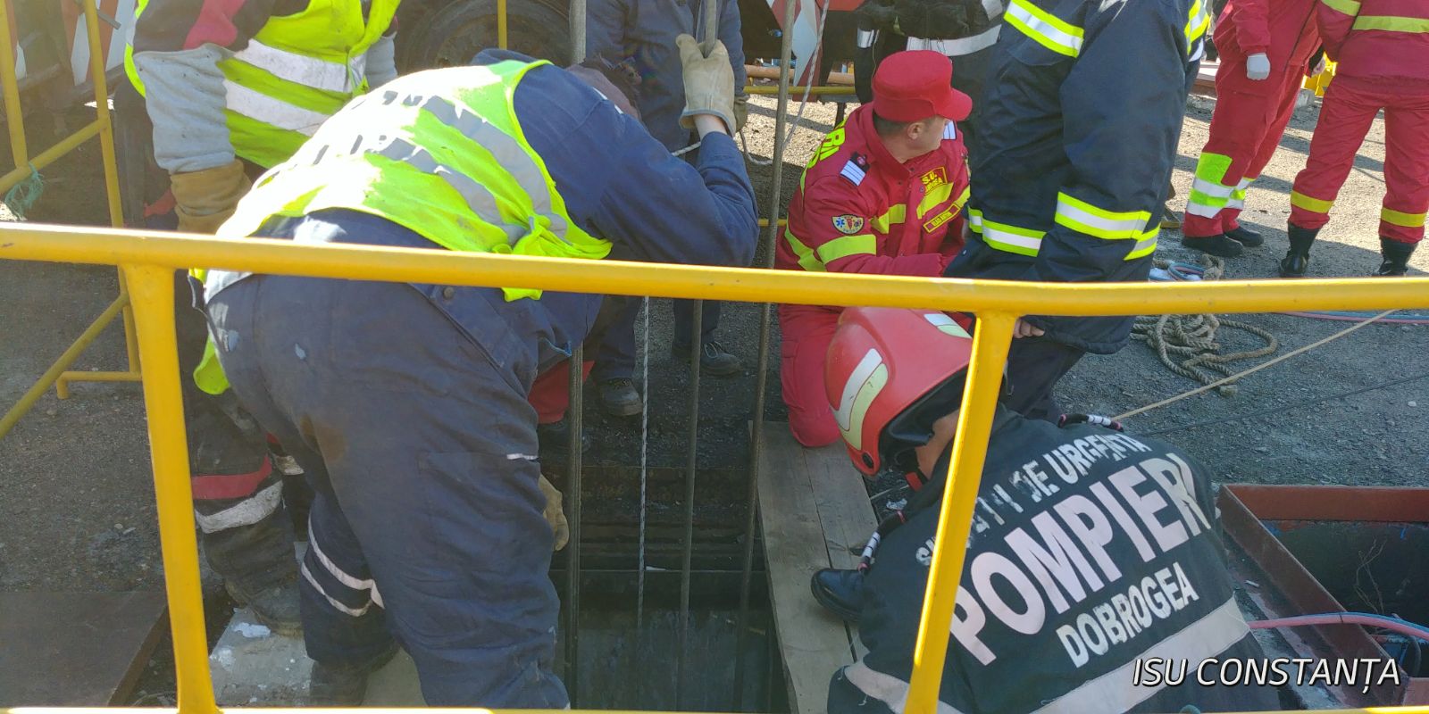 Pompierii de la ISU Dobrogea și cadrele medicale intervin la aceast oră, 10.30, pentru salvare unui bărbat de 44 de ani care a căzut într-un puț adânc de 7 metri, în zona Ecluză din Ovidiu.
