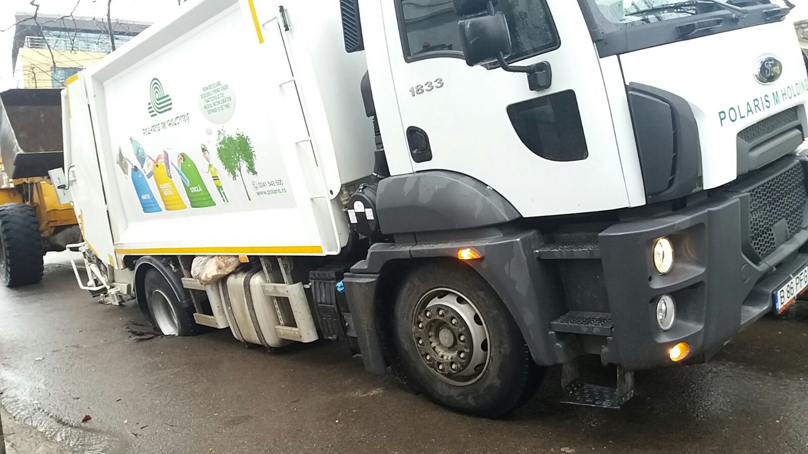 O porțiune din carosabilul de pe strada Timișanei din Constanța s-a surpat astăzi sub o mașină de gunoi a firmei Polaris. S-a întâmplat aproape de intersecția străzii Timișanei cu bulevardul Mamaia. A fost nevoie de intervenția unei wole pentru a muta mașina firmei de salubrizare, care rămăsese blocată în craterul din asfalt.