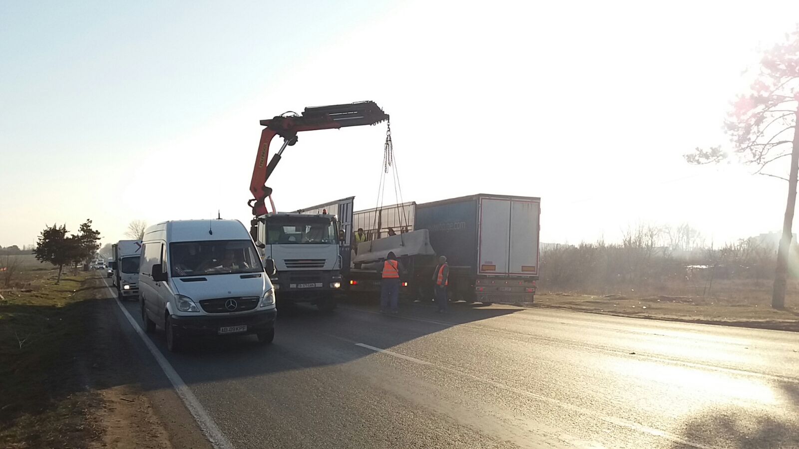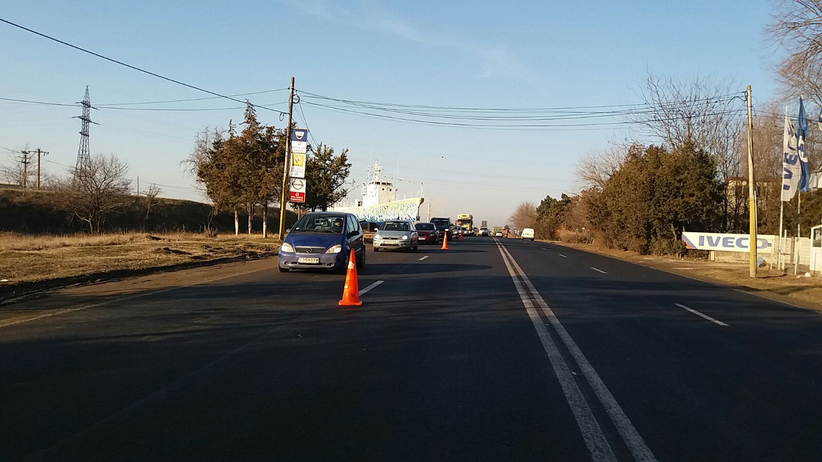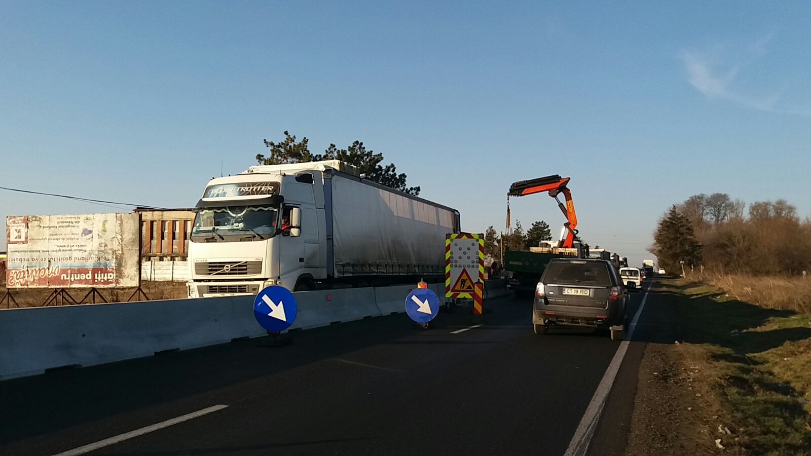 În această dimineață se circulă cu dificultate pe DN 3, spre Constanța, în zona în care se montează separatoarele de sens.