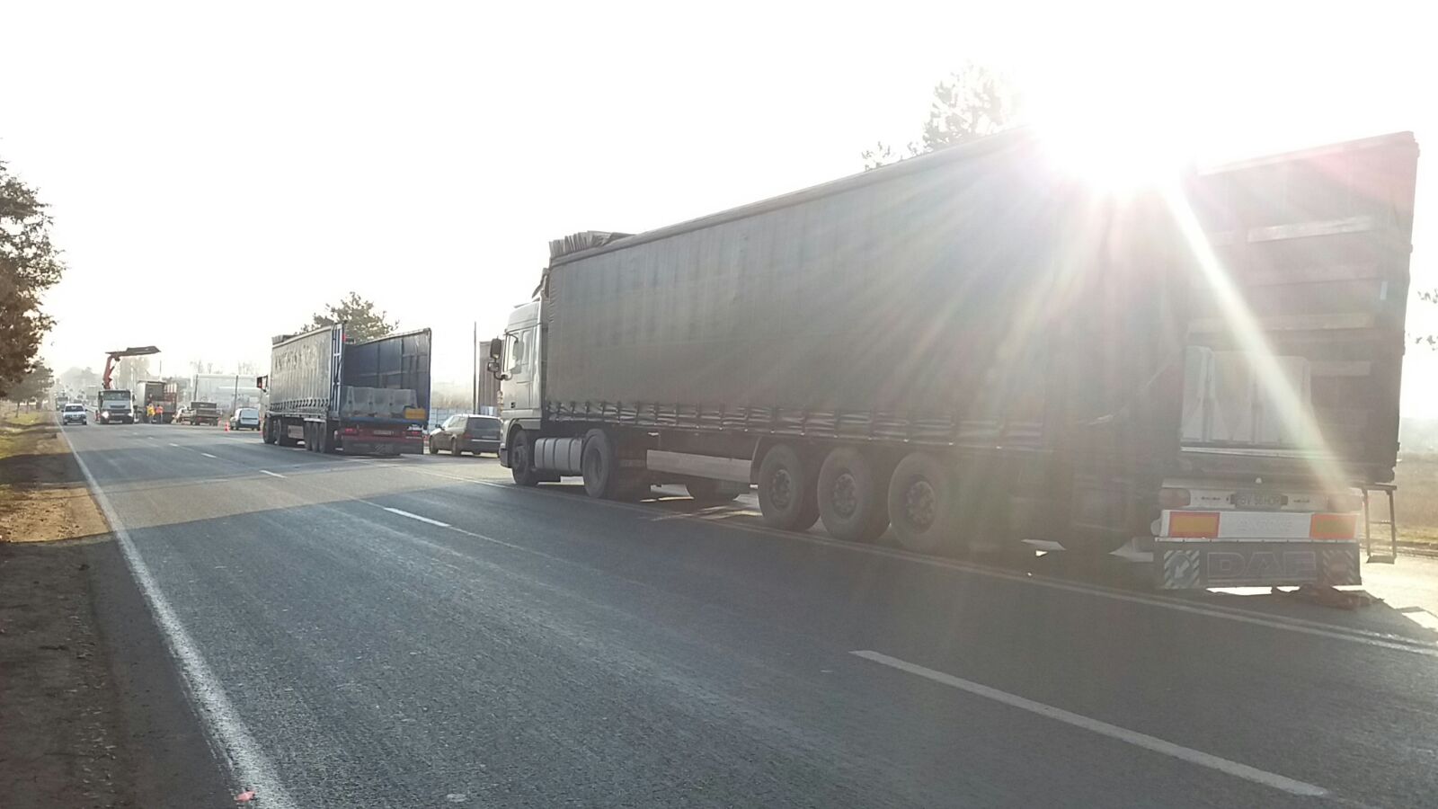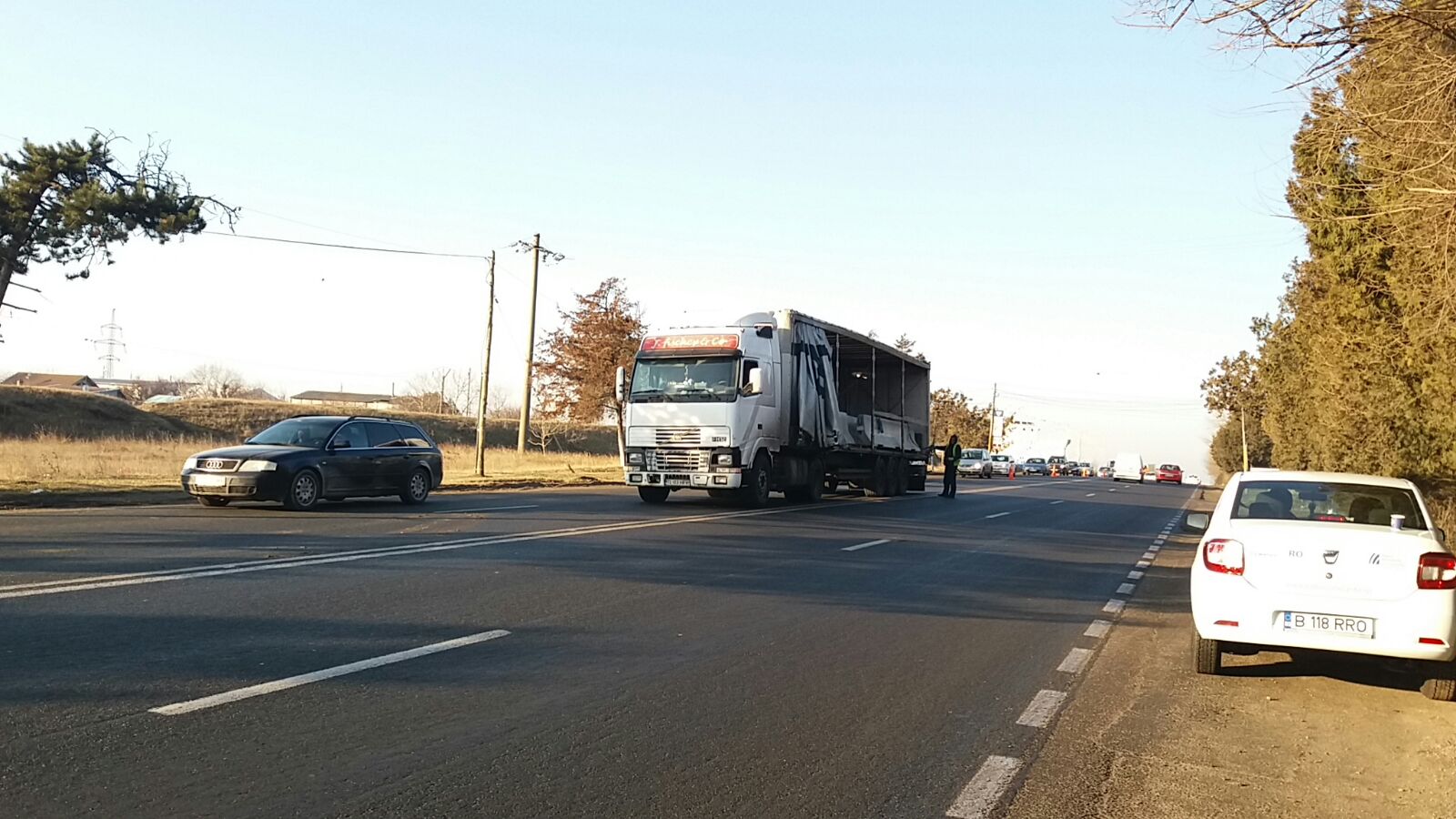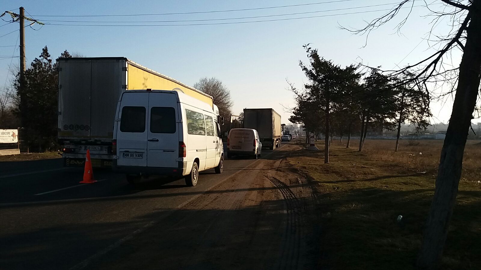 În această dimineață se circulă cu dificultate pe DN 3, spre Constanța, în zona în care se montează separatoarele de sens.