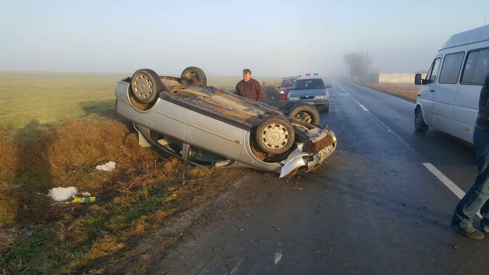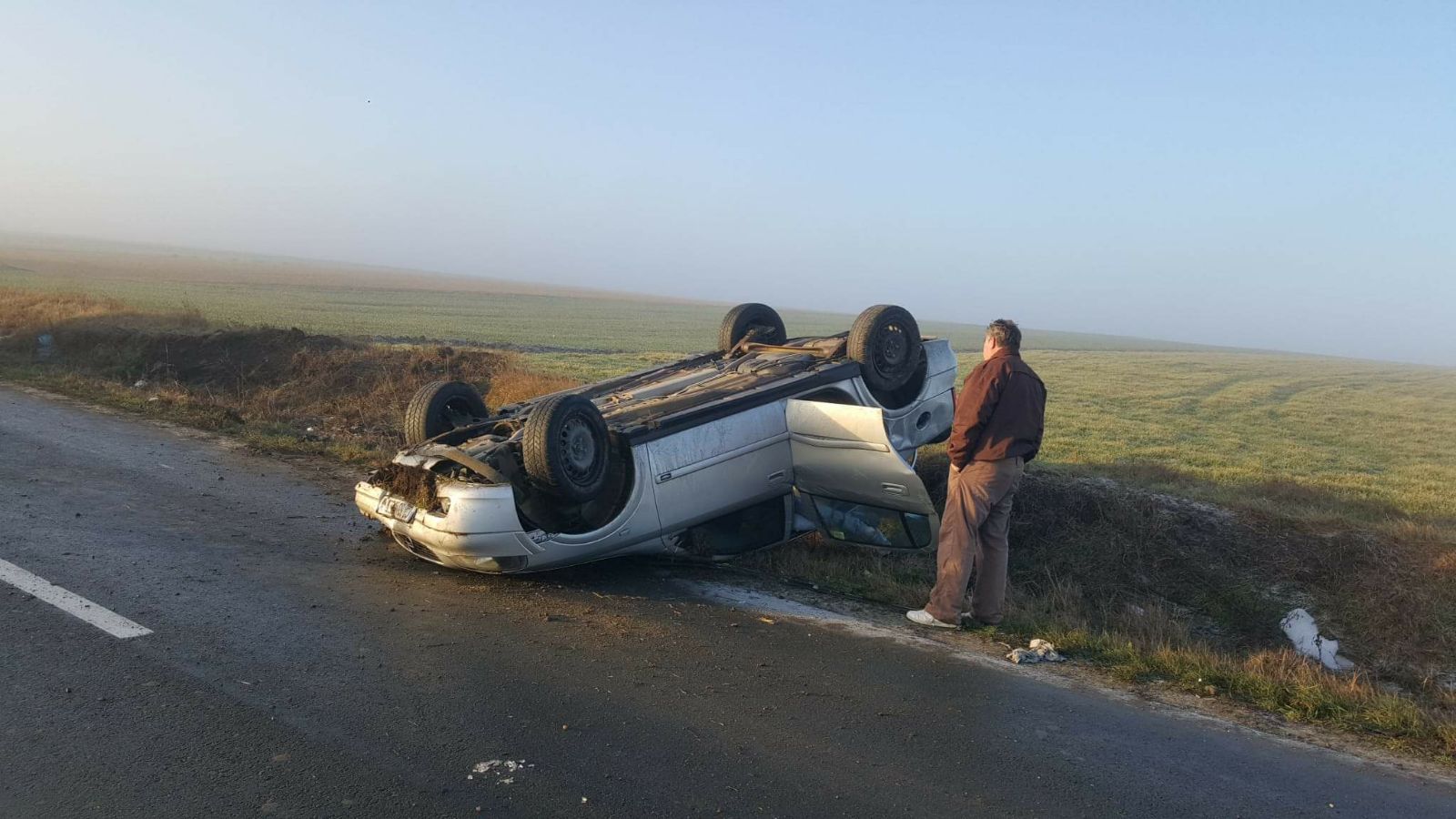 Mașina în care se aflau șoferul și încă un pasager a părăsit partea carosabilă și s-a răsturnat pe câmp. Din fericire, cei doi ocupanți ai autoturismului nu au fost răniți grav. Ei au primit îngrijiri medicale la fața locului de la un echipaj al Serviciului Județean de Ambulanță.