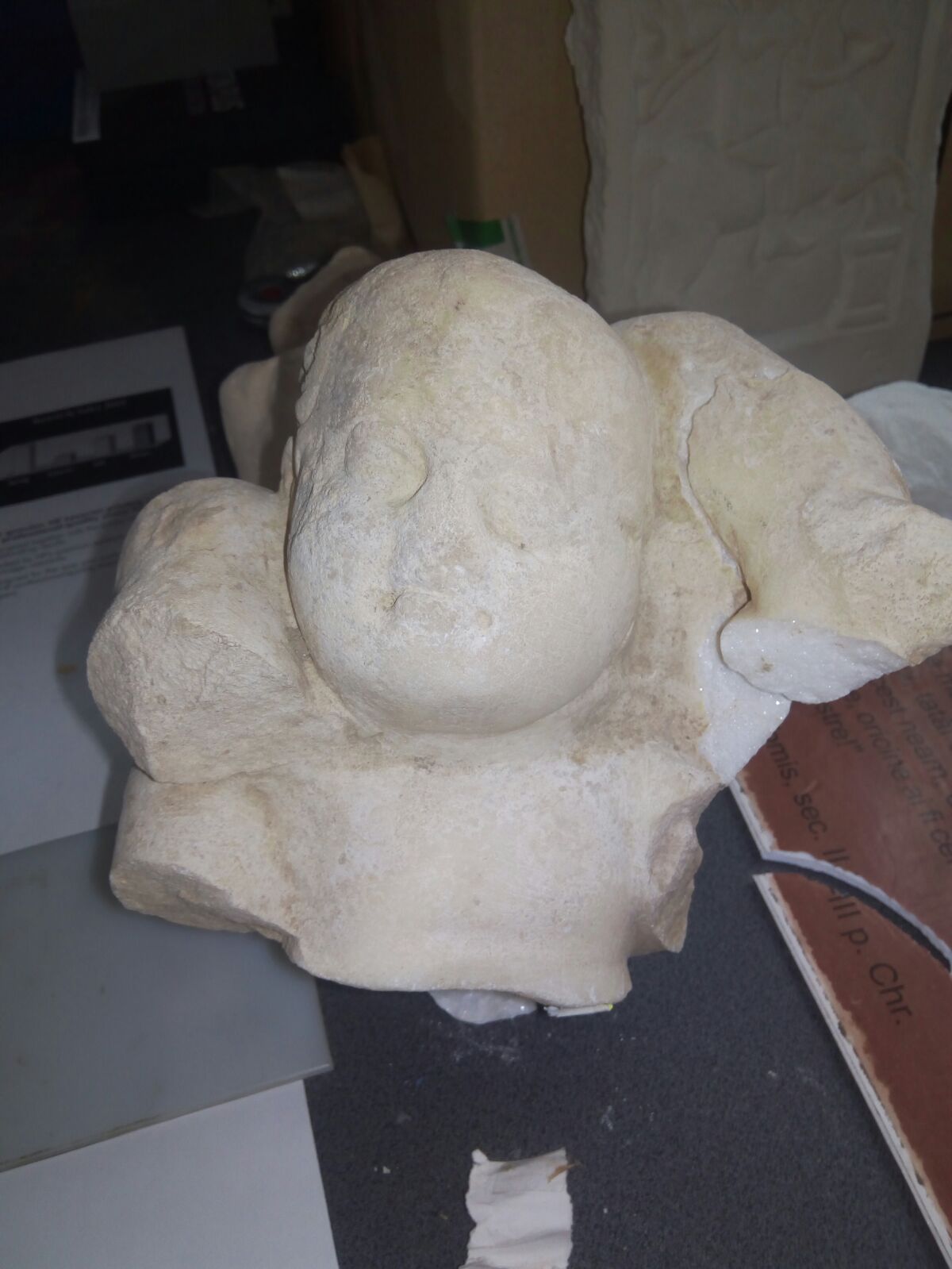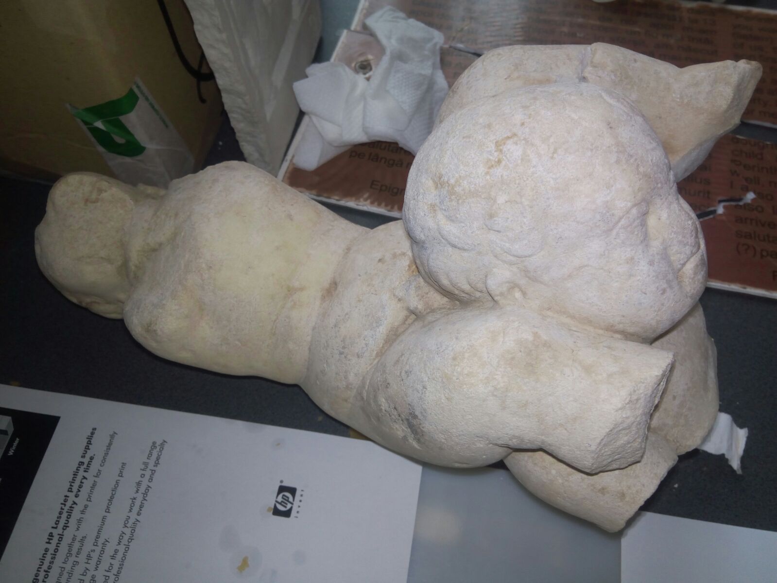 În premieră, pentru Radio Constanța, specialiștii au vorbit și despre un fragment statuar din marmură găsit tot în apropiere de zidăria pictată. Reprezentarea este bizară, ar putea fi o scenă mitologică, un tablou de familie sau chiar o scenă dedicată lui Eros, mai completează arheologul Aurel Mototolea: