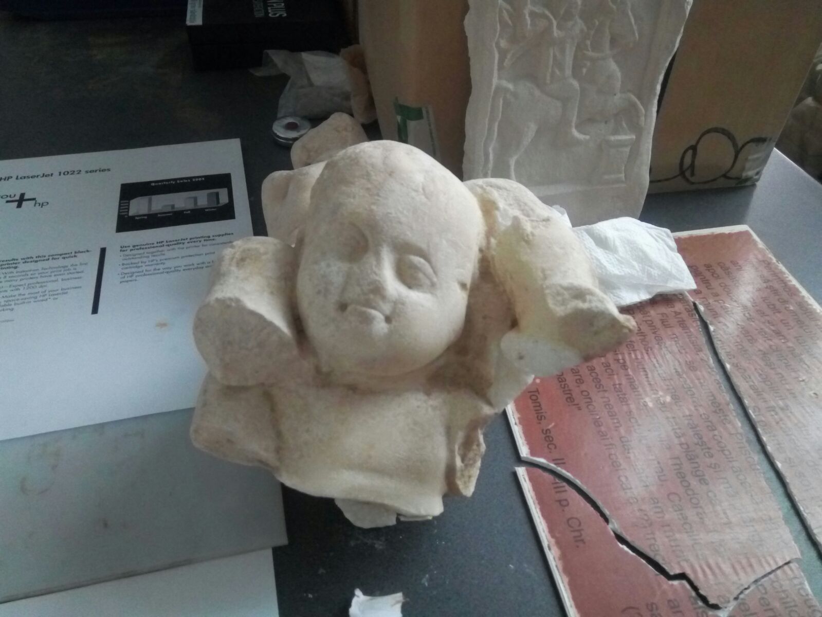 Pe drumul ce leagă Moscheea Carol I de Arhiepiscopia Tomisului, arheologii constănțeni au scos la lumină fragmente din tecuiala pictată a unei clădiri de epocă romană. Bucățile au ajuns în atelierele de restaurare ale Muzeului de Istorie Națională și Arheologie Constanța, mai precis la specialistul Dan Ionescu. Văzute de departe piesele arată ca un puzzele colorat.