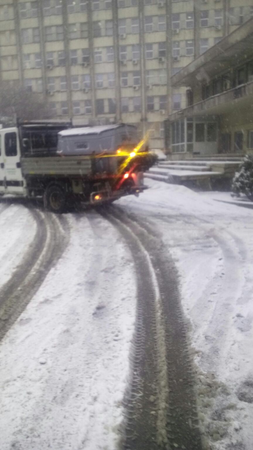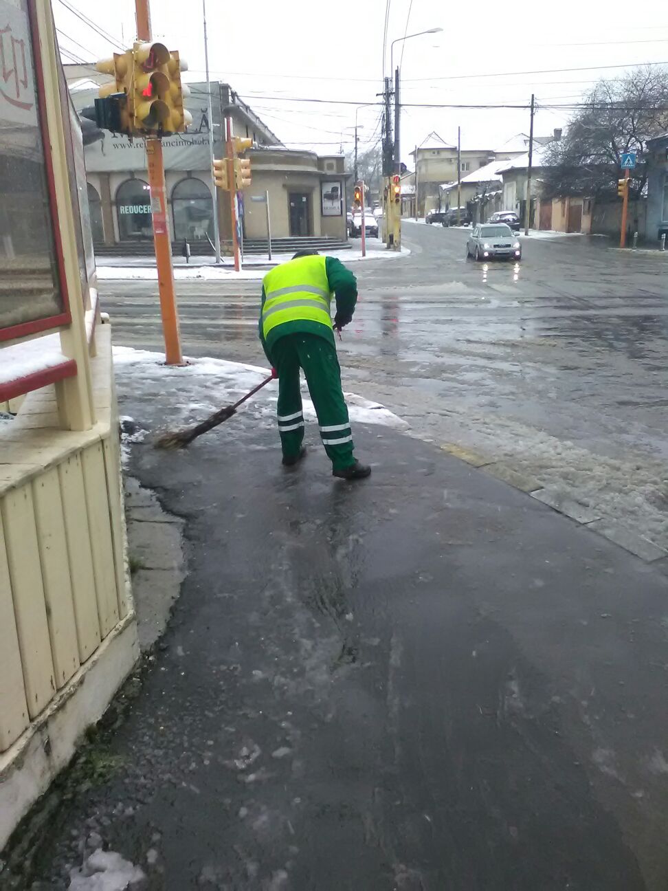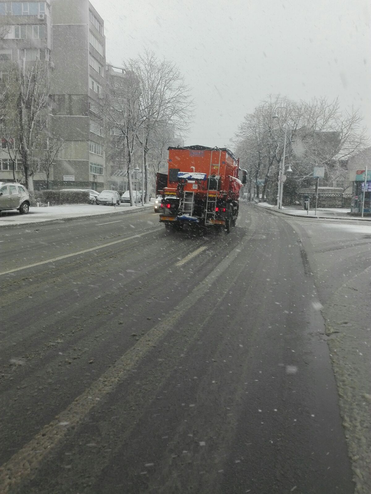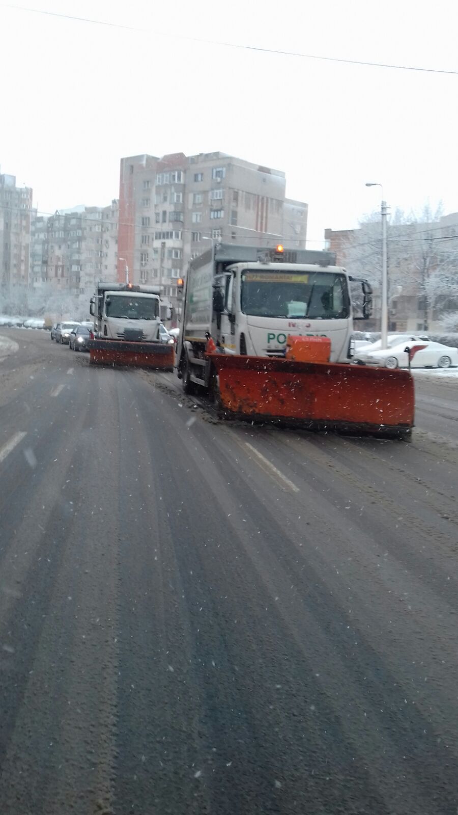 De la ora 10:30, 22 de utilaje cu lamă intervin pentru degajarea zăpezii, cu precădere în zona de sud a municipiului, unde stratul de zăpadă a fost mai consistent. În stațiile de autobuz, pe trecerile de pietoni și trotuare, la intrările de la Unitatea de primiri urgențe și instituții publice se intervine pentru curățarea zăpezii cu 118 angajați ai SC Polaris M Holding.