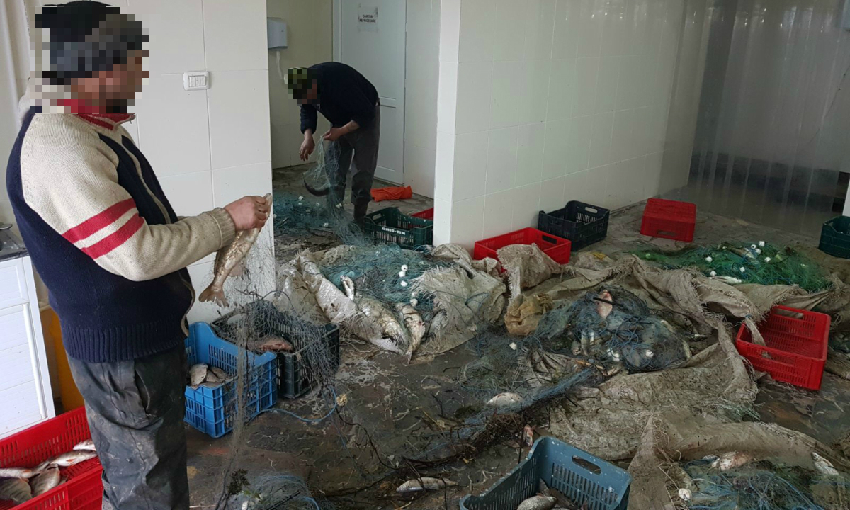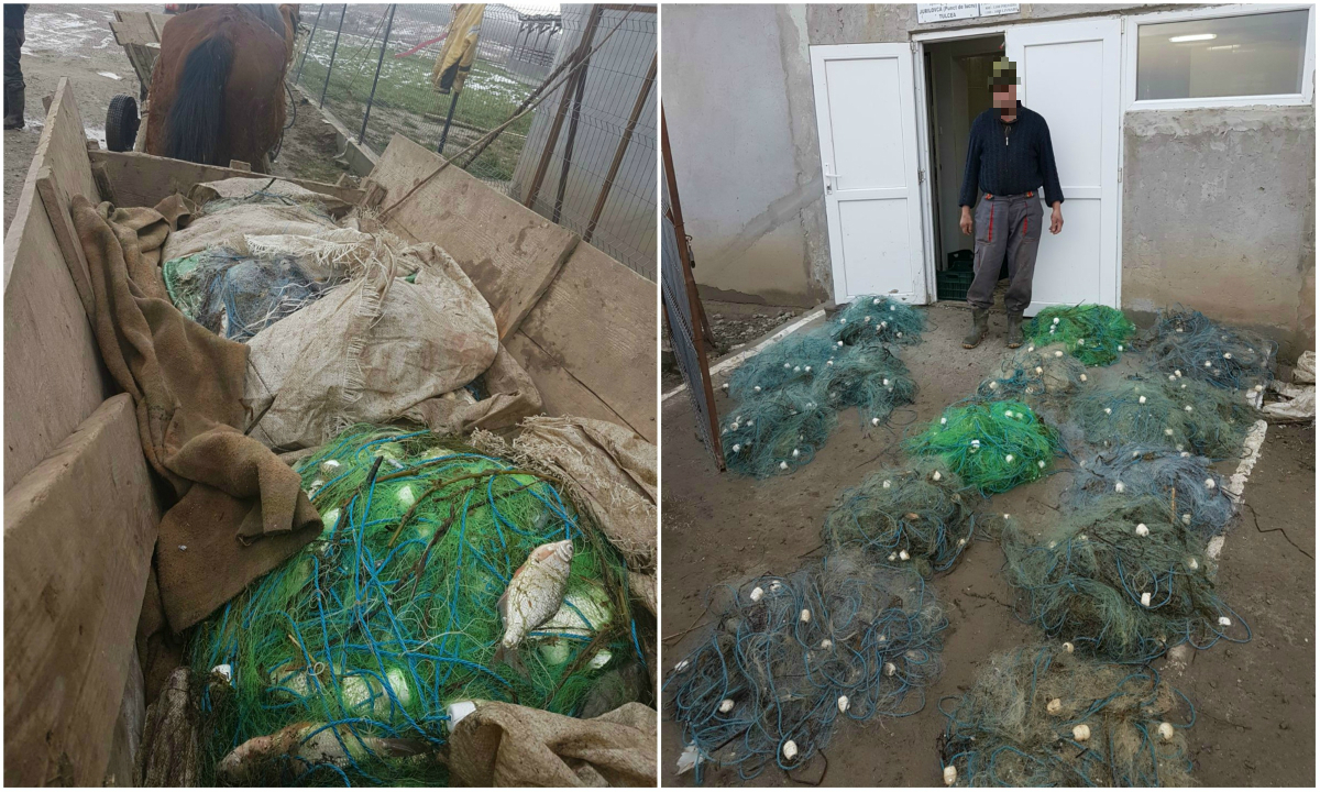 În urma verificării atelajelor, au fost descoperite 26 unelte din plasă de tip monofilament în lungime totală de 1.860 m , interzise la deținere, în care se aflau 421 kilograme de peşte, din speciile somn, crap, biban, babuşcă, plătică, singer şi caras, în stare proaspătă, pentru care persoanele în cauză nu au putut prezenta documente legale.