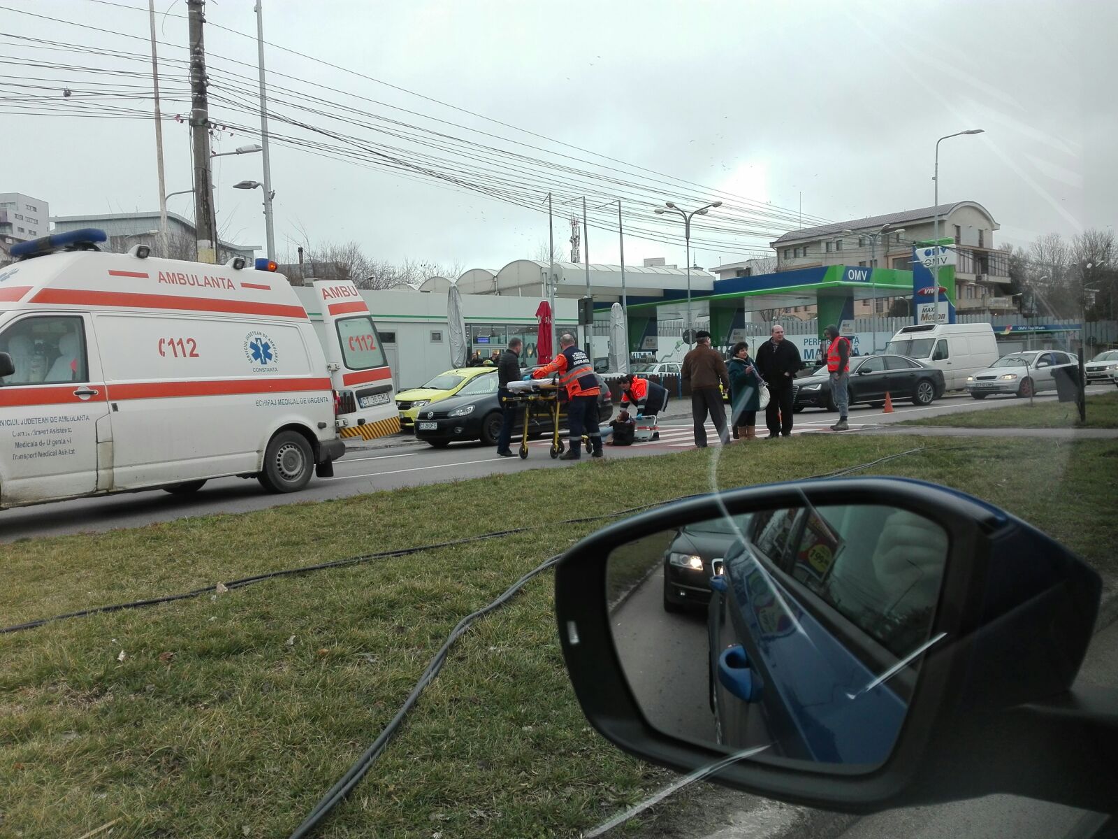 Accident rutier, astăzi, pe bulevardul Mamaia din Constanța. Un pieton a fost rănit și a avut nevoie de asistență medicală specializată după ce a fost lovit de o mașină chiar pe trecerea de pietoni din zona Pescărie.